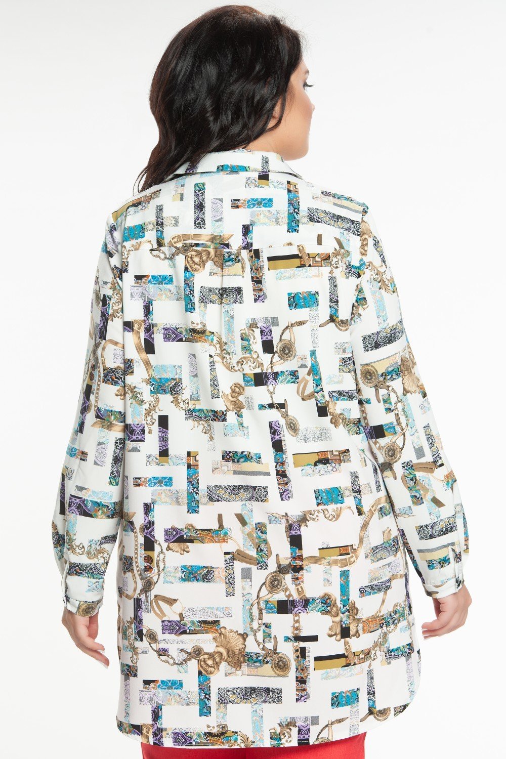 Блуза прямого силуэта, с фигурным низом. Перед с цельновыкроенной планкой, застегивающейся на петли и пуговицы, спинка с кокеткой. Воротник отложной на стойке. Рукав длинный на притачной манжете, застегивающейся на петлю и пуговицу. Длина рукава регулируется патой, застегивающейся на петлю и пуговицу,настроченной на рукав с изнаночной стороны. На фото модель 52 размера, рост 174 см. Шифон "Ниагара" непрозрачный.