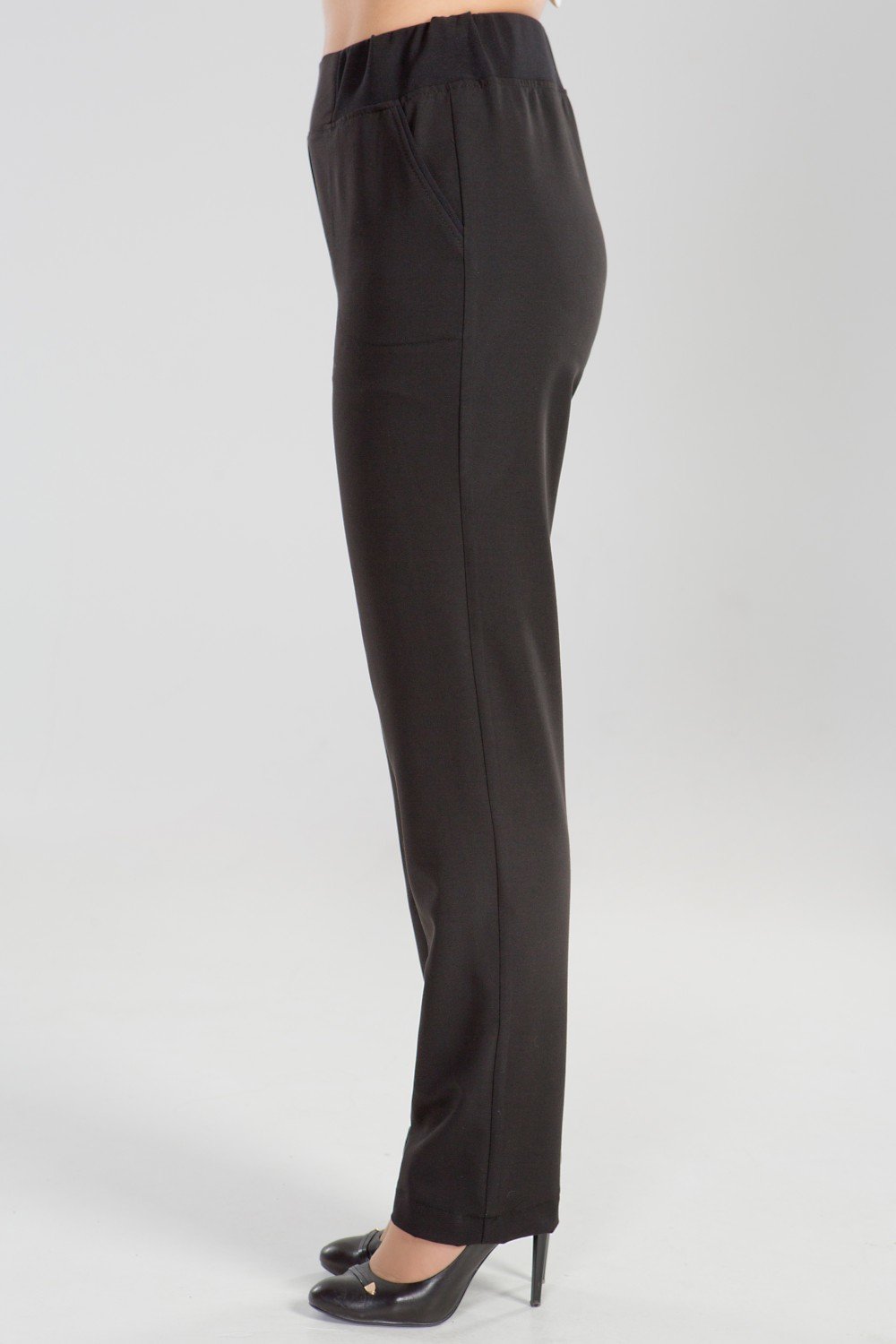 Черные брюки классического силуэта, зауженные к низу. Ткань костюмная со стрейчем. Прелесть данной модели в высокой посадке и широком трикотажном поясе. В боковых швах карманы, имитация застежки. Брюки прекрасно подходят под любой верх, как цветной так и однотонный. Длина изделия 104 см, в 48 размере, с каждым размером прибавка 0,5 см. Рост модели 171 см. Аксессуары в комплект не входят