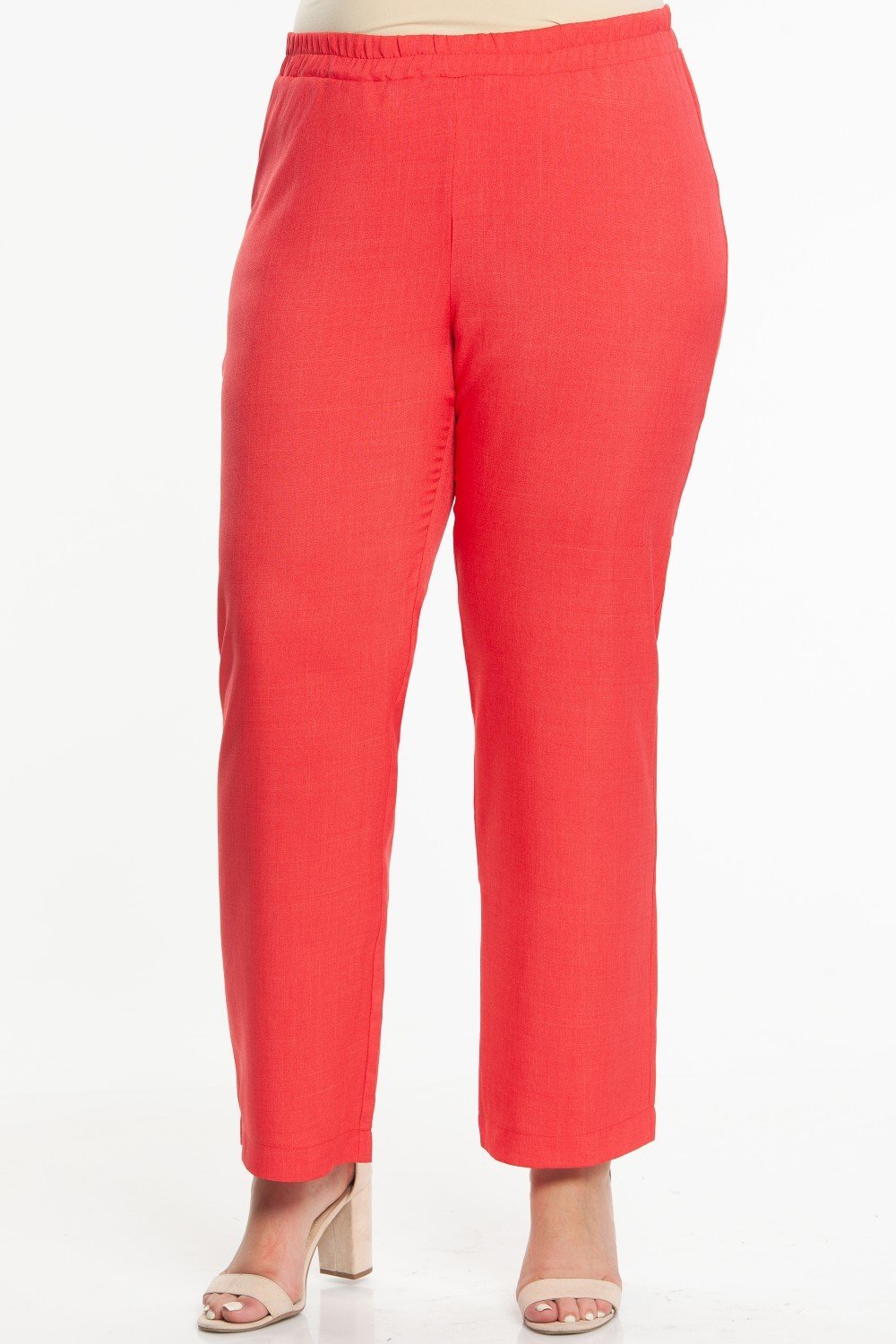 Брюки полной длины из смесового льна насыщенного песочного цвета! Элегантный или спортивный- они станут дополнением любого образа. Прямой свободный силуэт, полная длина. Верх изделия выполнен с притачным пояском на резинке. На фото модель 52 размера 174 см. Цвет коралловый.