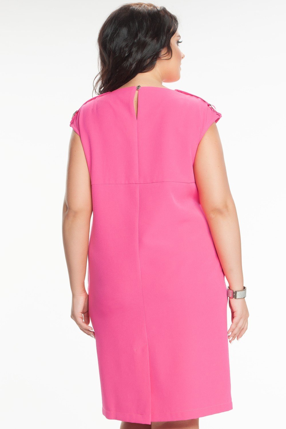 Платье полуприлегающего силуэта, отрезное выше линии талии по переду и спинке, с карманами в боковом шве из плательной ткани со стрейчем. Спинка с застежкой по горловине на навесную петлю и пуговицу и с открытой шлицей в среднем шве.; Плечо спущенное. По плечевому шву пата с пряжкой. Горловина круглая. На фото модель 52 размера, рост 174 см.