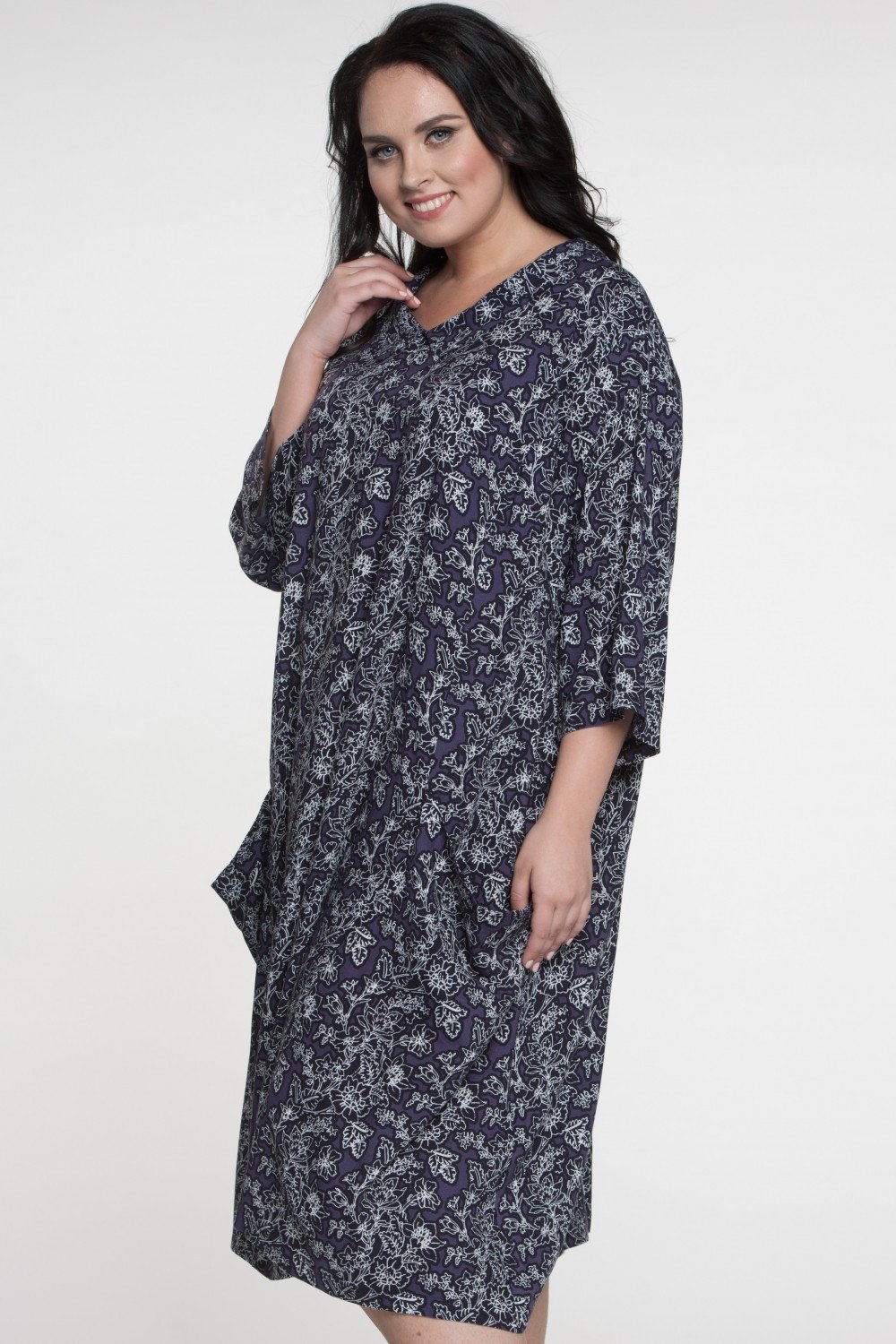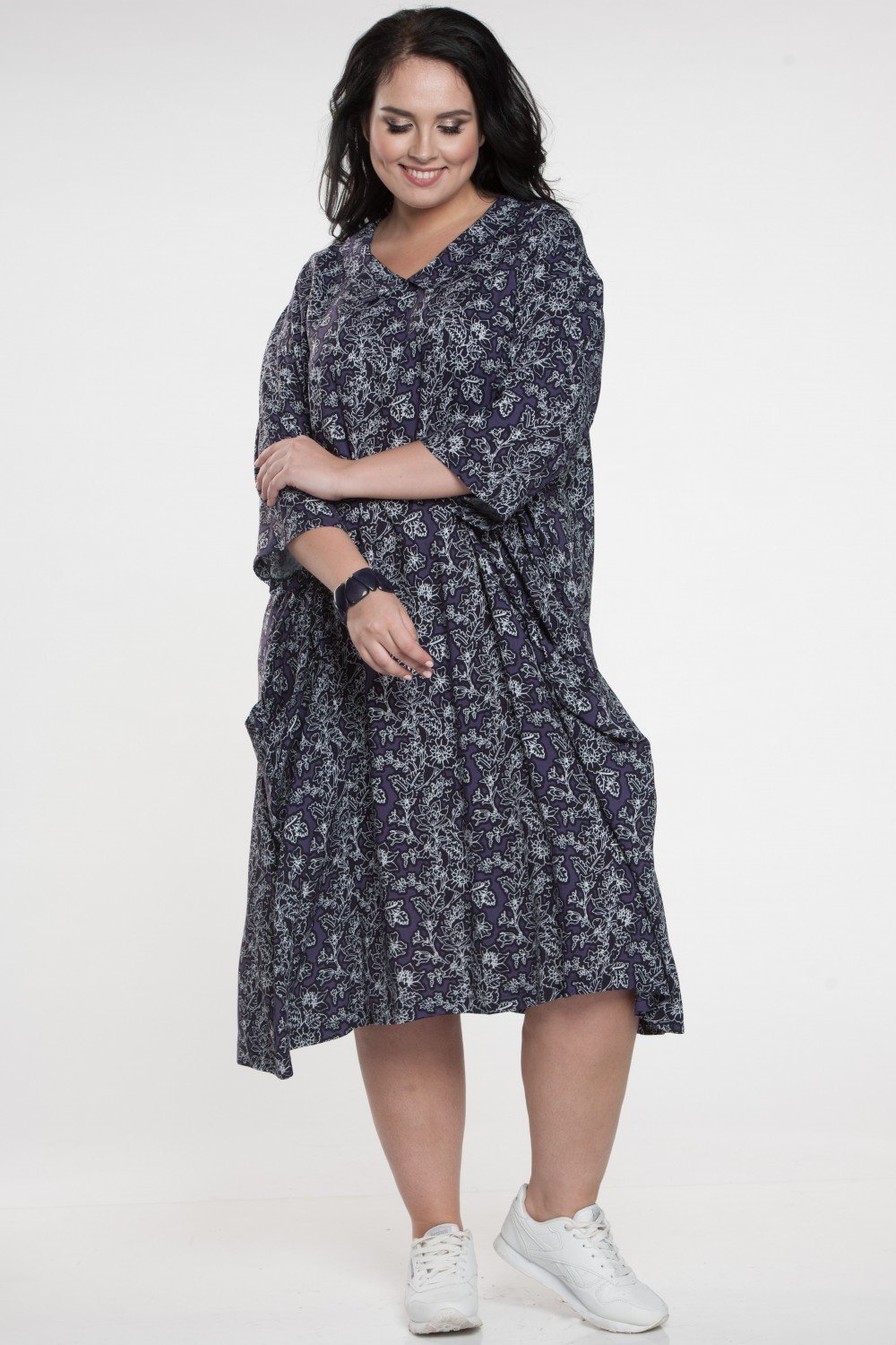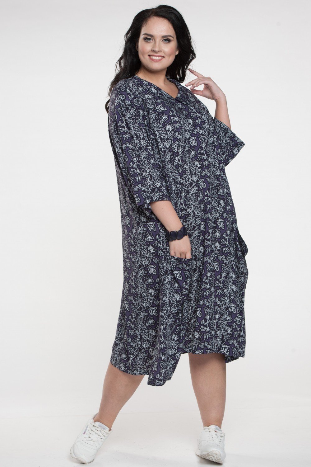 Платье А-образного силуэта из легкого штапеля. Рукав втачной 3/4. С карманами в рельефных швах. Платье разноуровневое по низу с "провисающими" боками в виде углов. Воротник отложной с острыми концами. Свободный покрой платья скрывает недостатки фигуры и сохраняет прохладу в жаркий летний день. Внимание! сдвоенные размеры! На фото модель 52 размера, рост 174 см.
