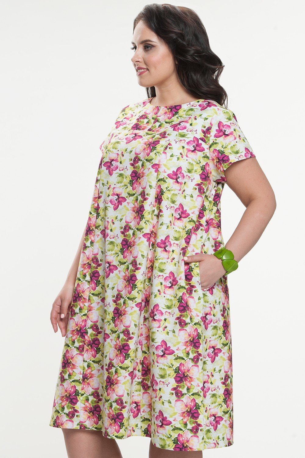 Очень стильное платье нежной расцветки из габардина! Платье А-образного силуэта, чуть выше колена, короткий рукав. Втачные карманы в боковых швах, по низу в боковых швах разрезы. Круглая горловина украшена небольшим разрезом. По переду платья - прямая кокетка. Платье может являться основой как повседневного, так и нарядного образа, стоит лишь сменить аксессуары и обувь! На фото модель 52 размера, рост 174 см.