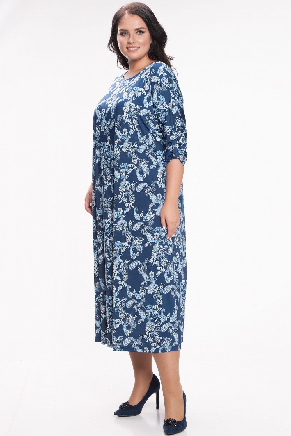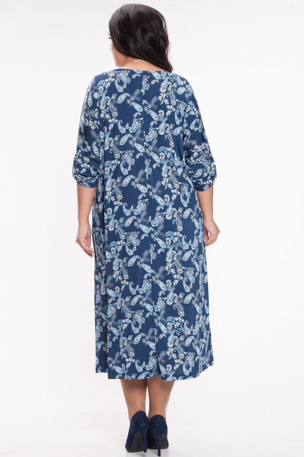 Нарядное платье из трикотажного полотна А-образного силуэта. Принт очень нарядный и модный, создает впечатление свежести. Цельнокроеный рукав 3/4 на широком манжете, собранном на шпульную резину и зафиксирован патой (см. фото в карточке товара). Круглая горловина без застежки. На фото модель: размер 46, рост 171 см.