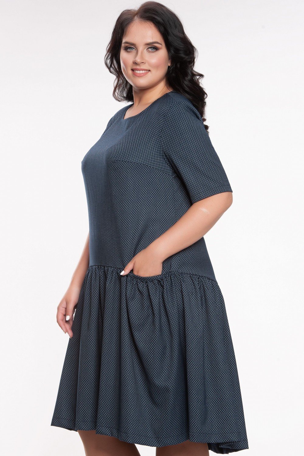 Стильное молодежное платье из костюмной ткани! Свободный силуэт, пышная юбка отрезная ниже талии, с втачными глубокими карманами. Платье с разноуровневым низом,по переду длина 91 см. Круглая горловина, короткий втачной рукав.Без подклада и застежки. На фото модель 46 размера, рост 171 см.
