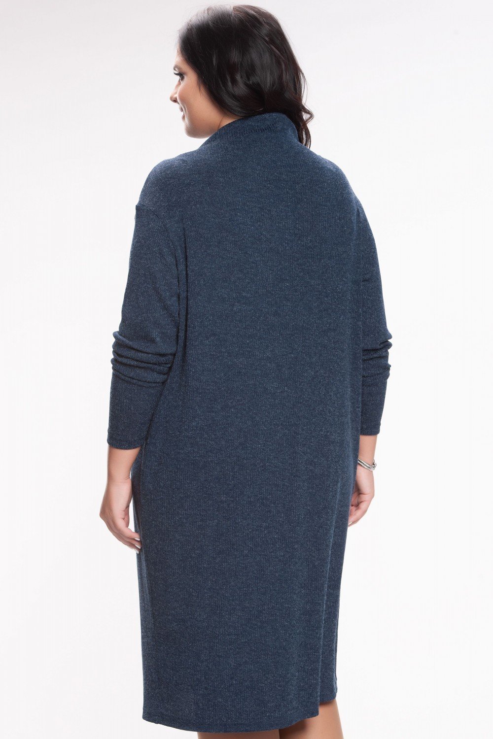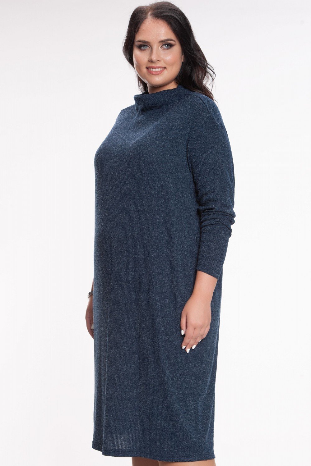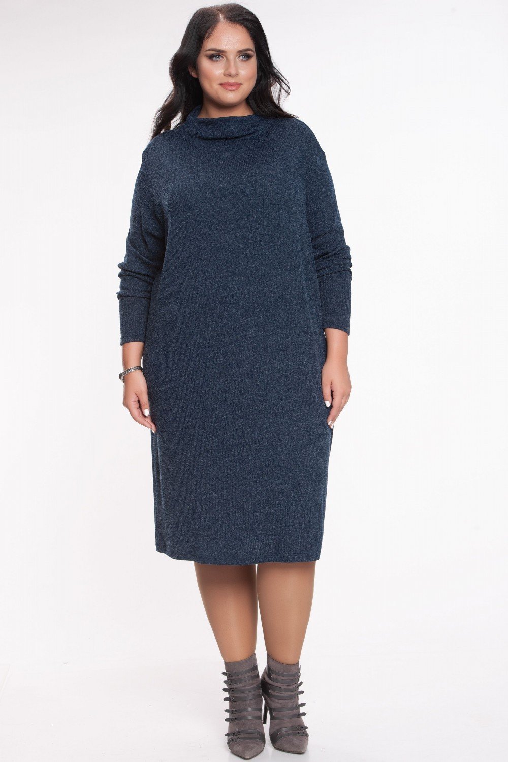 Платье из мягкого трикотажного полотна насыщенного темно синего меланжа, прямого силуэта, втрачной рукав полной длинны. Оригинальный цельно кроенный воротник-стойка. Платье идеально подходит и для работы и в праздничные дни. На фото модель 46 размера, рост 171 см. Аксессуары не входят.