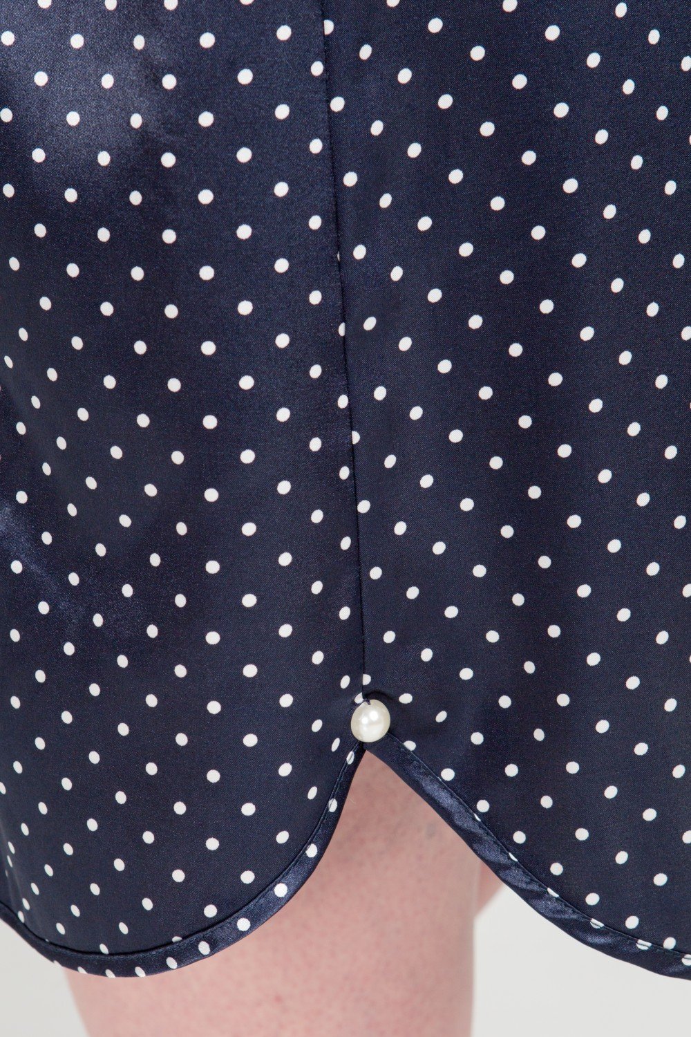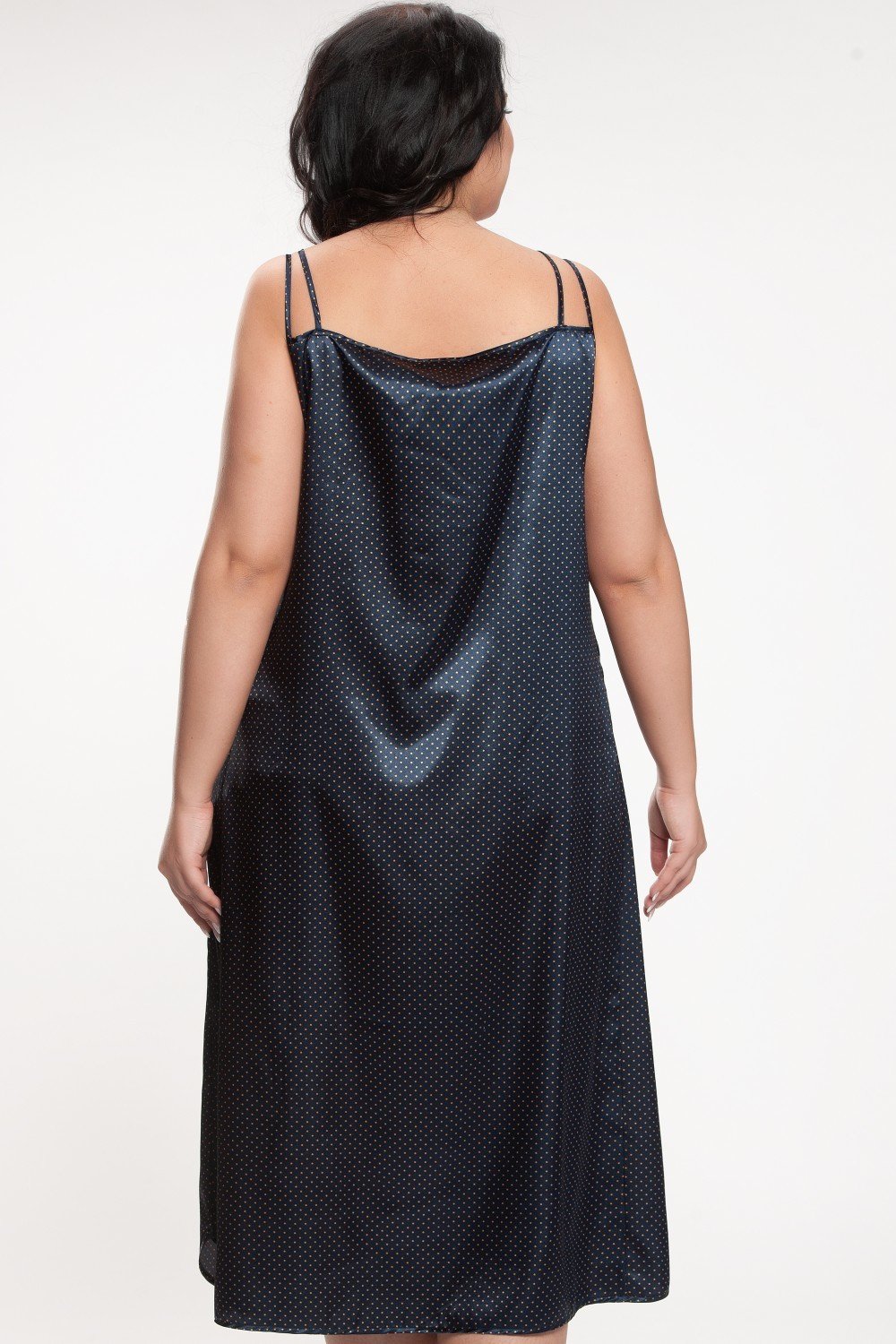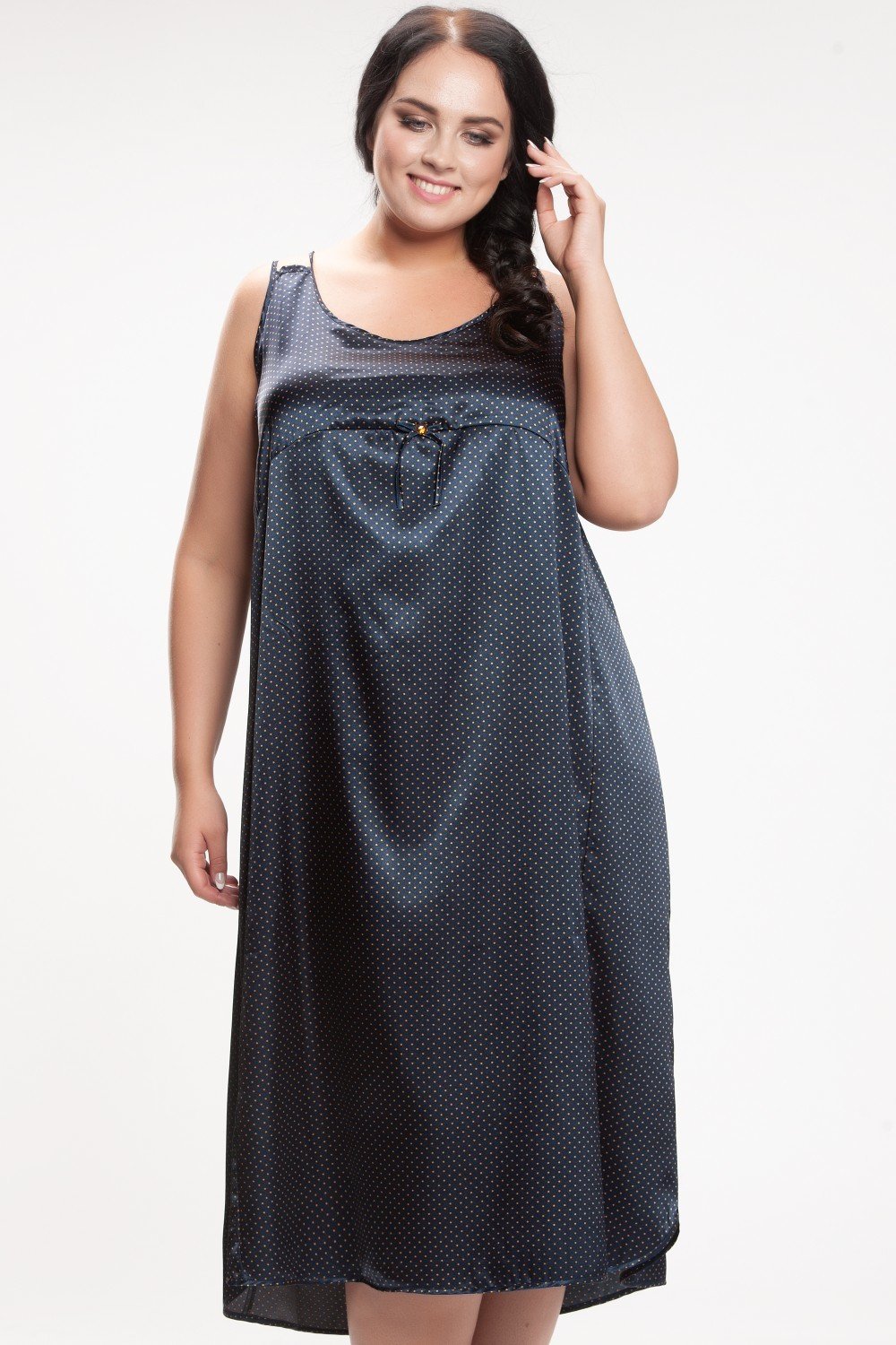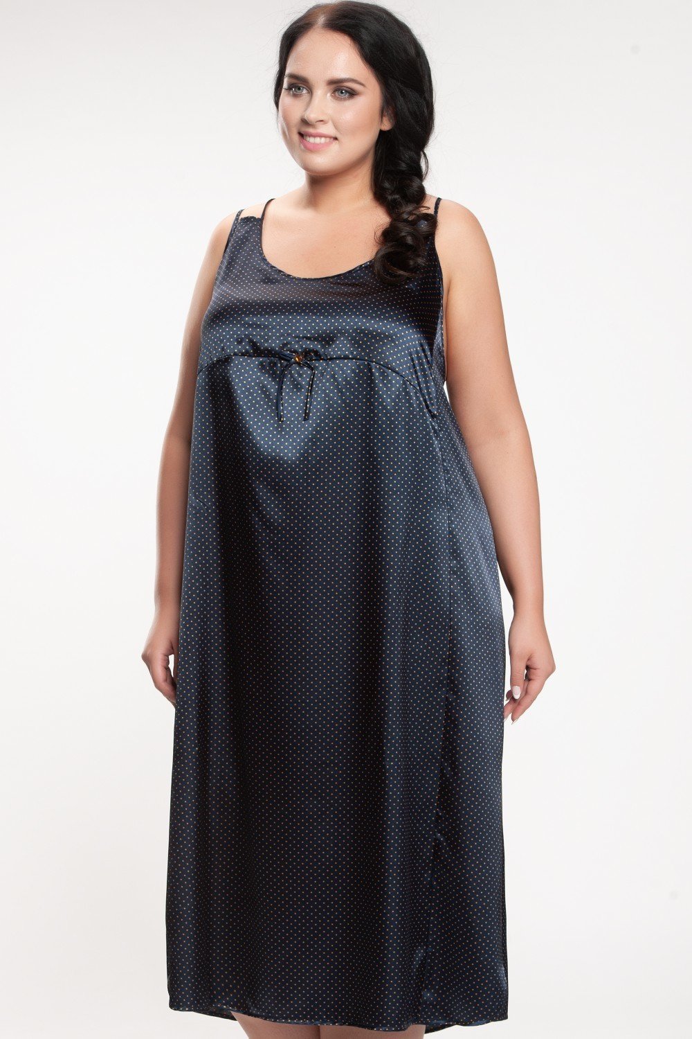 Атласная сорочка А-силуэта, на тонких двойных бретелях, длинна 106 см. По переду к кокетке пришиты декоративный бантик и украшение. Низ сорочки по краям закругленный и с одной стороны так же пришит декор. На фото модель 60 размера, рост 182 см.