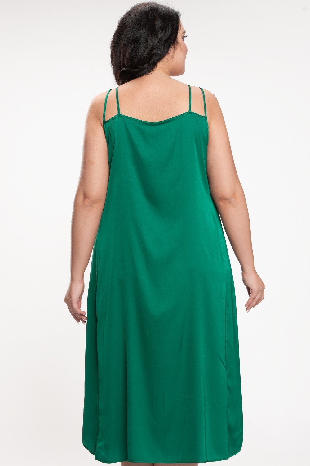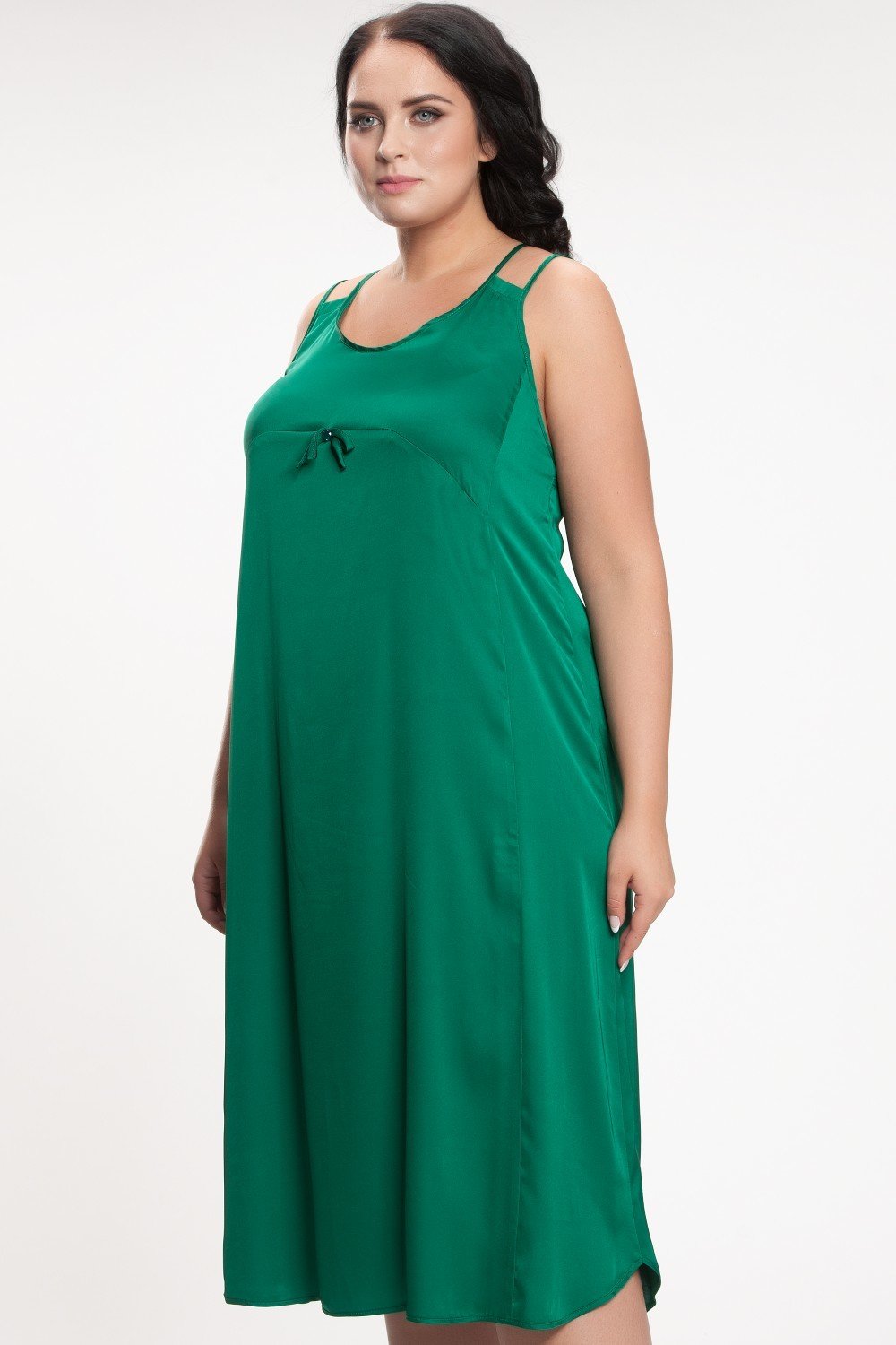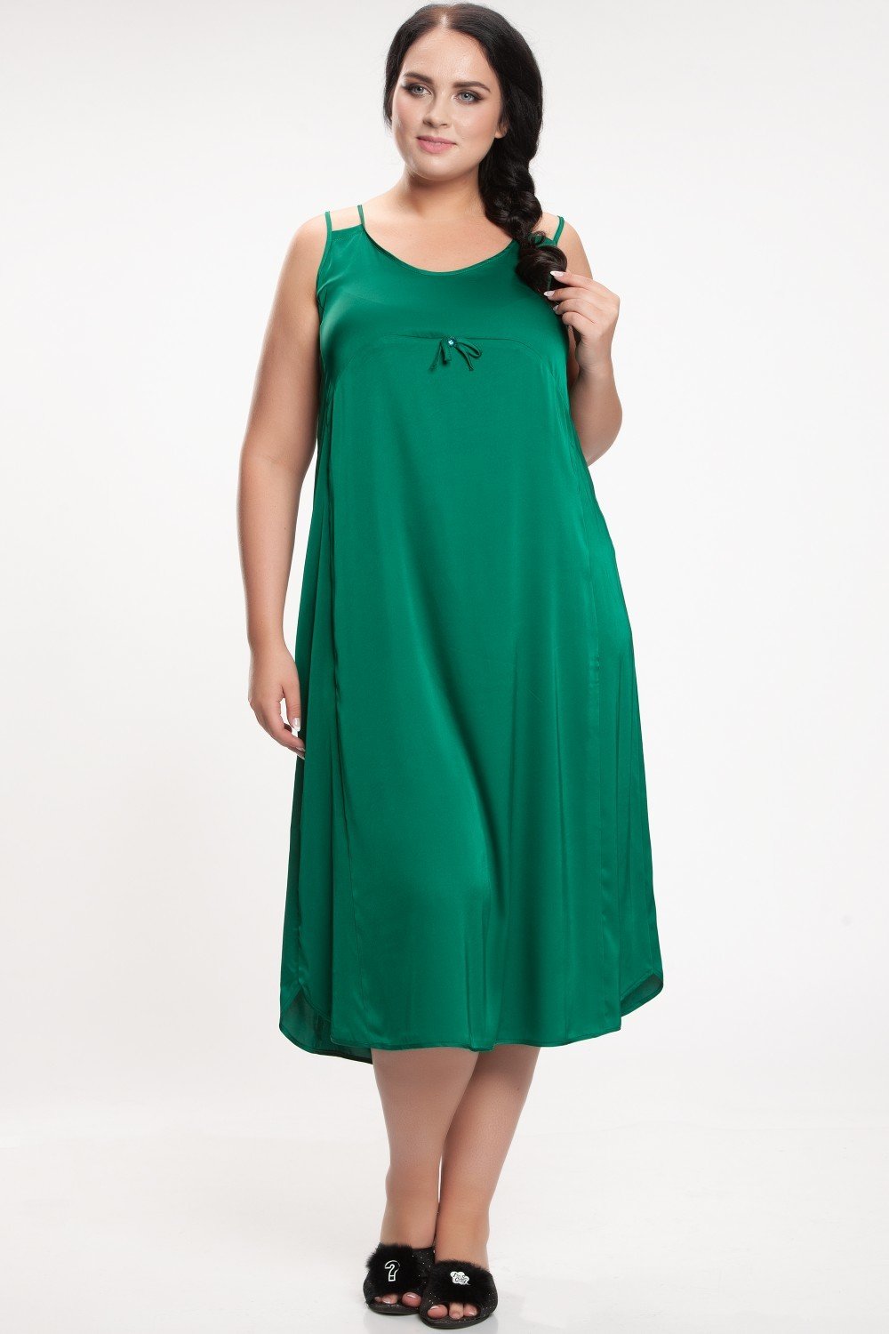 Атласная сорочка А-силуэта, на тонких двойных бретелях, длинна 106 см. По переду к кокетке пришиты декоративный бантик и украшение. Низ сорочки по краям закругленный и с одной стороны так же пришит декор. На фото модель 60 размера, рост 182 см.