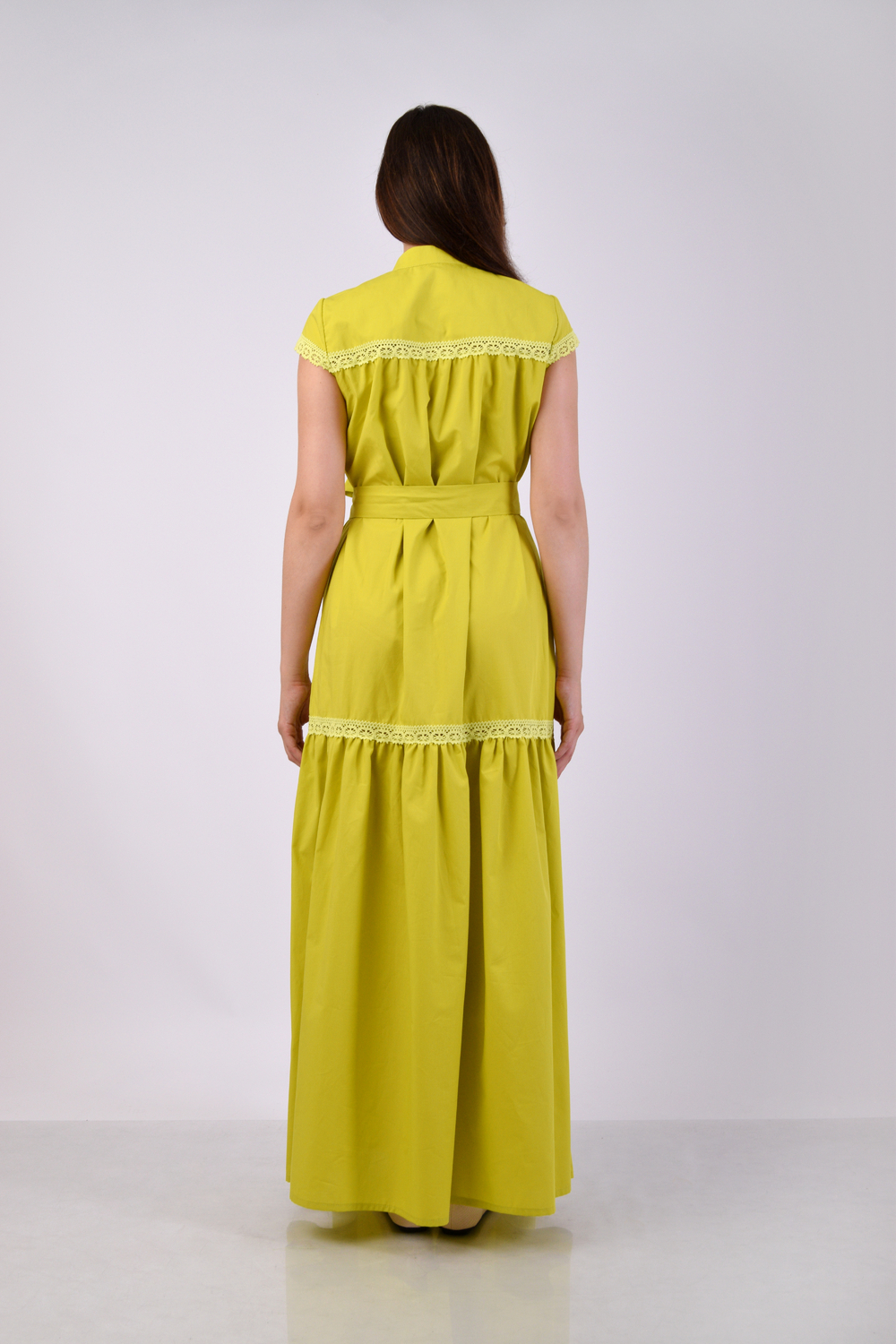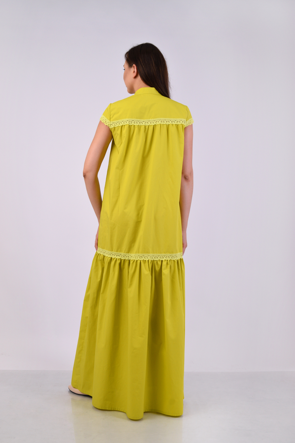Юбка в сборку, линия притачивания юбки отделана кружевом.