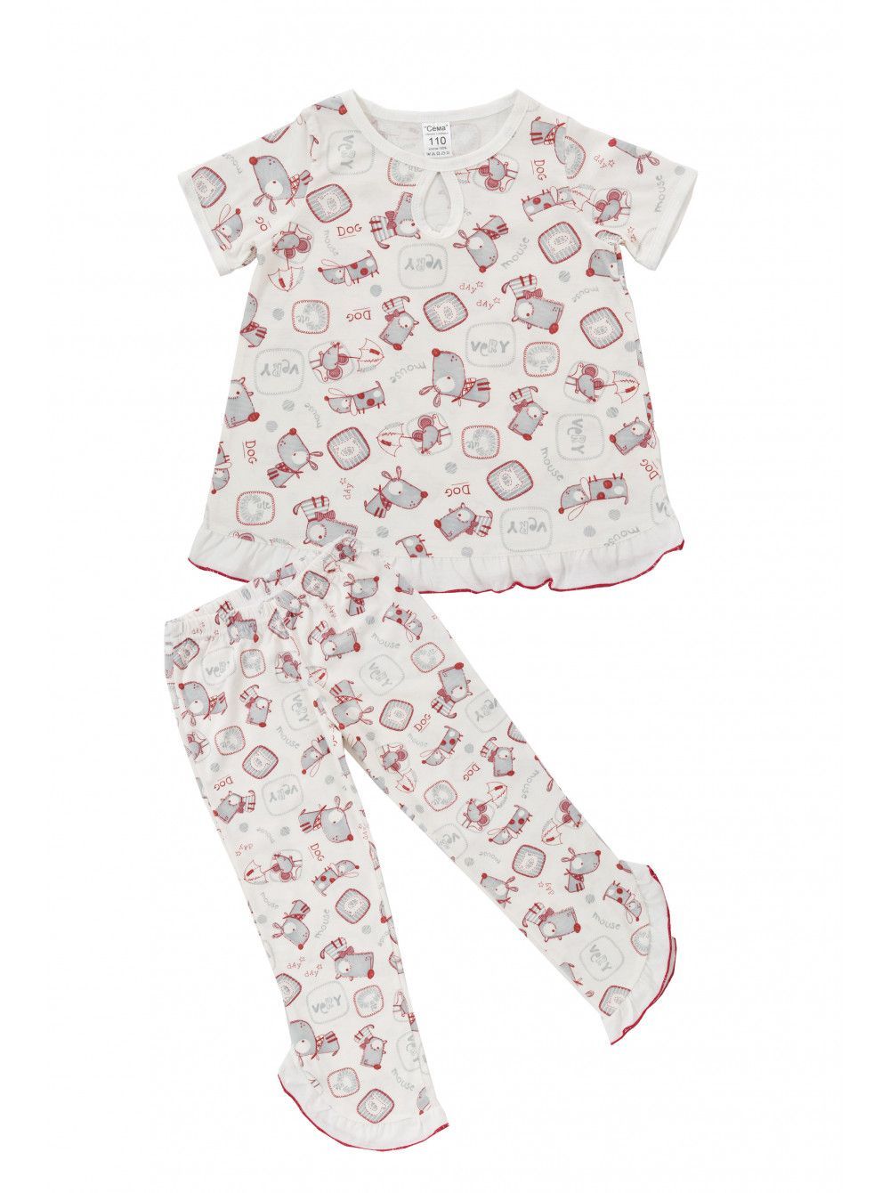 Пижама для девочек из 2 предметов: футболка и штаны.
