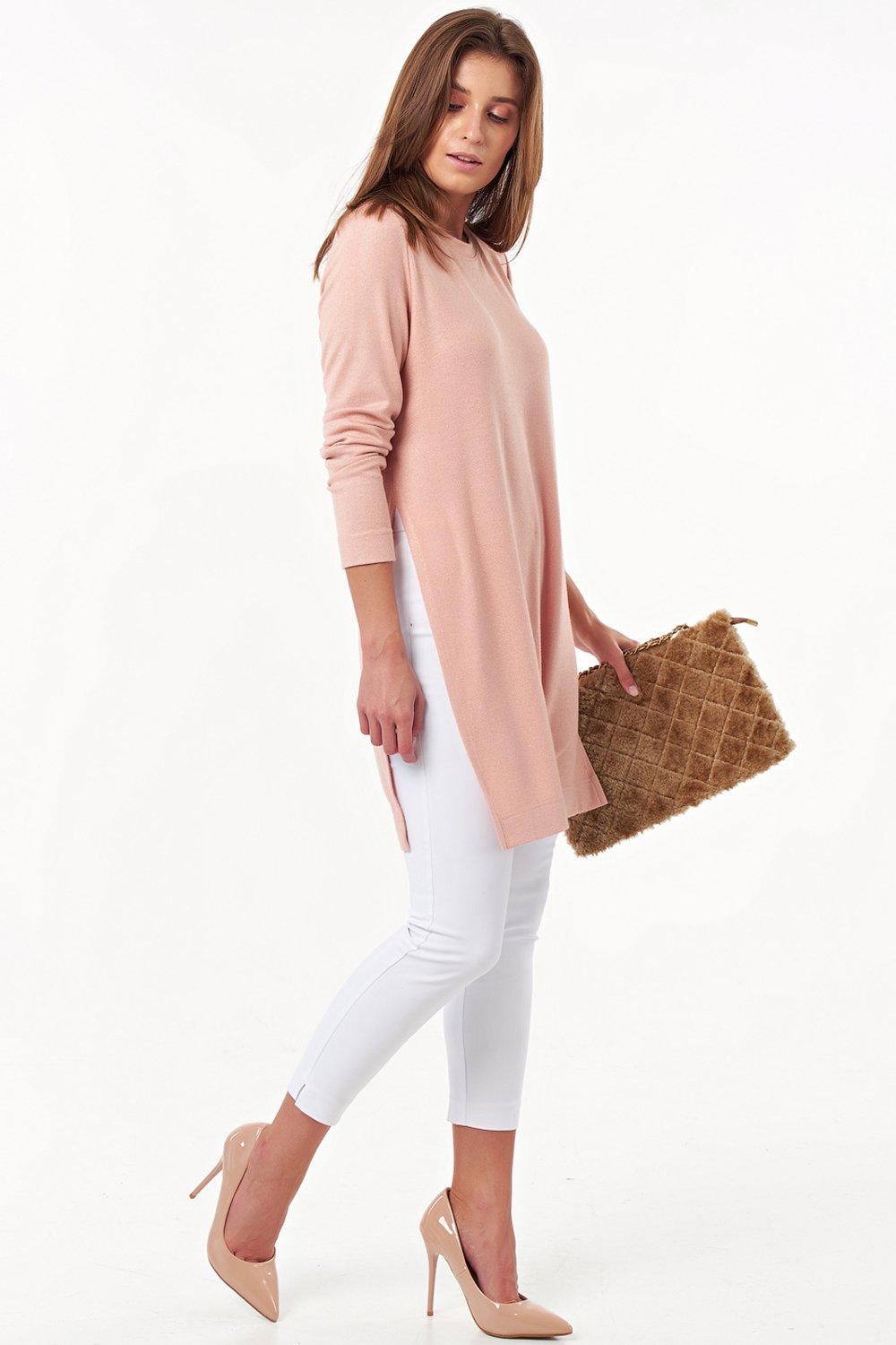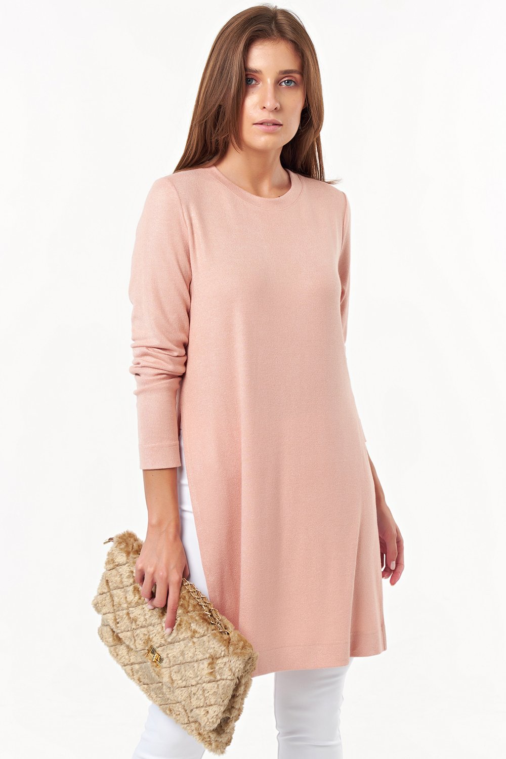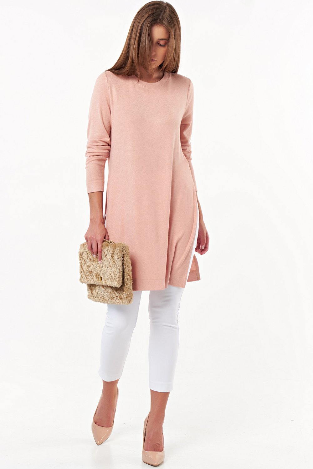• Особенности: Туника прямого силуэта из мягкого струящегося трикотажа. Детали: горловина округлой формы, обработана бейкой, рукав втачной, длинный. По низу изделия выполнены глубокие разрезы.