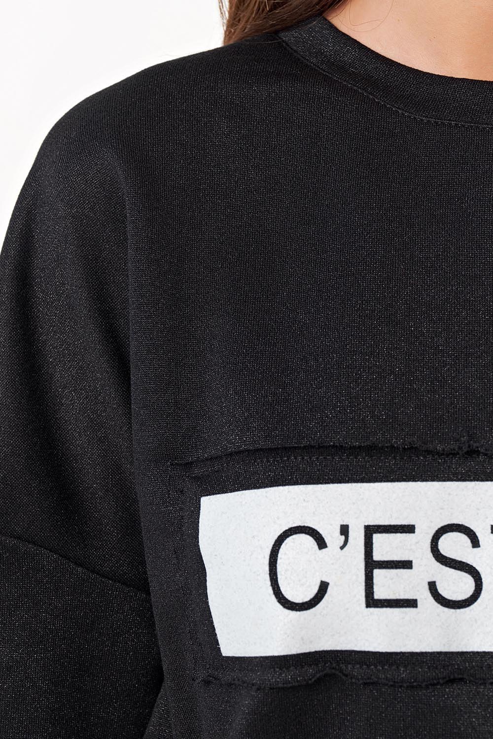 • Особенности: Костюм из трикотажа-футера. Свитшот: горловина обработана бейкой. втачной рукав на манжете со спущеннйо проймой. По переду настрочена нашивка с принтов. Брюки полуприлегающего силуэта. Детали: притачной пояс с кулиской, брючные карманы, нашивка с принтом.
