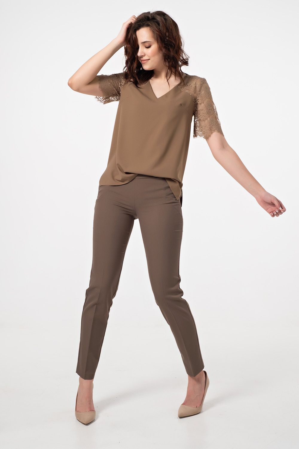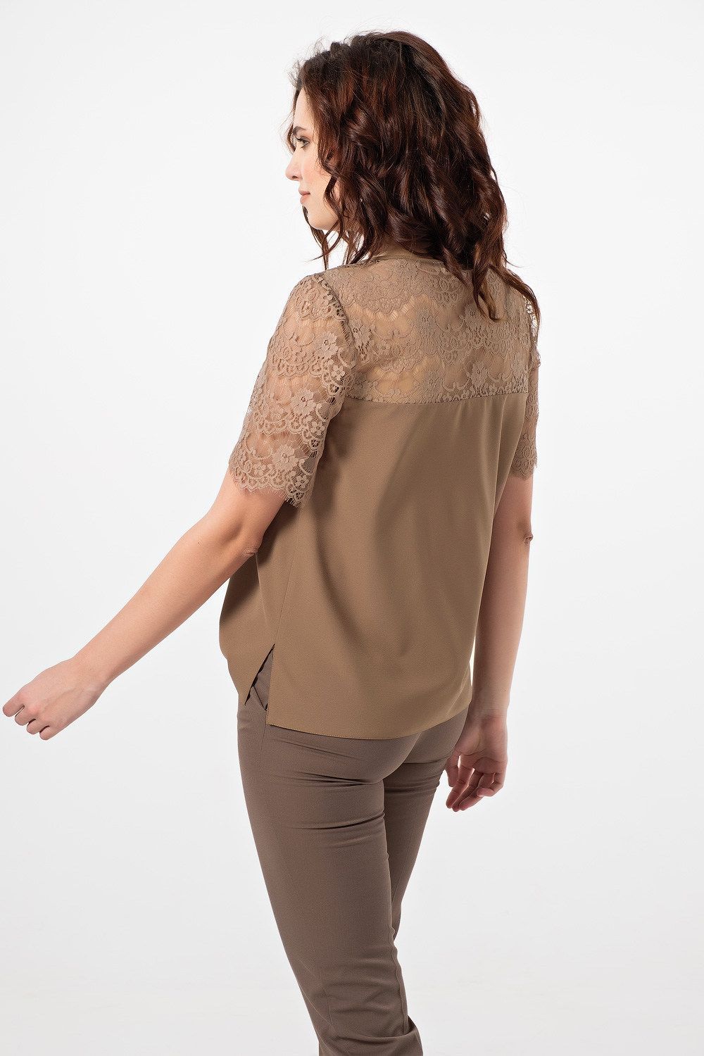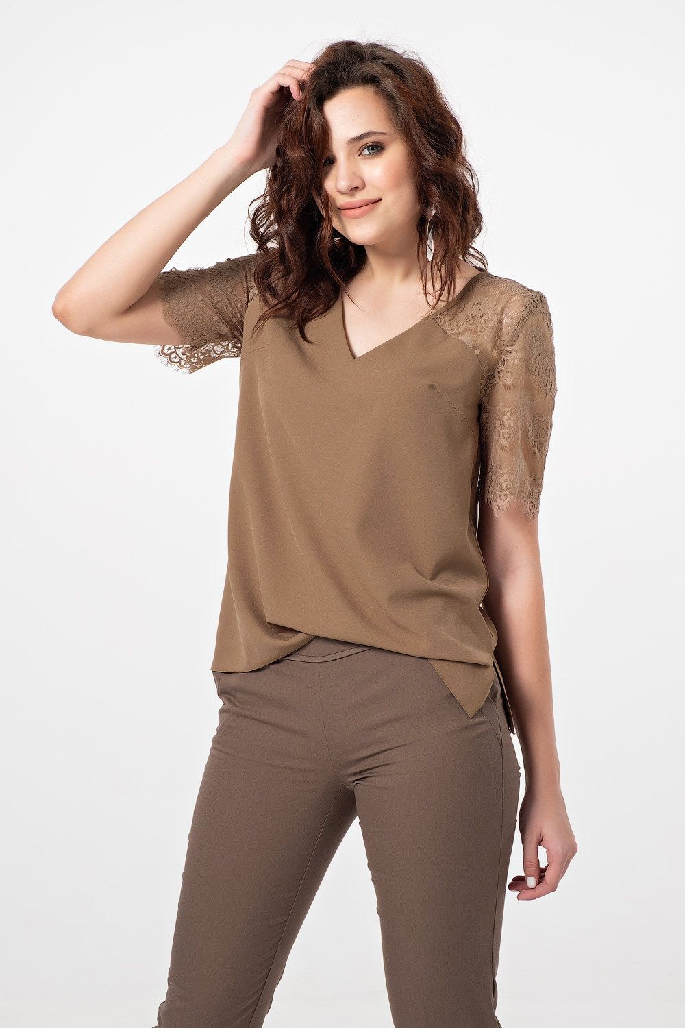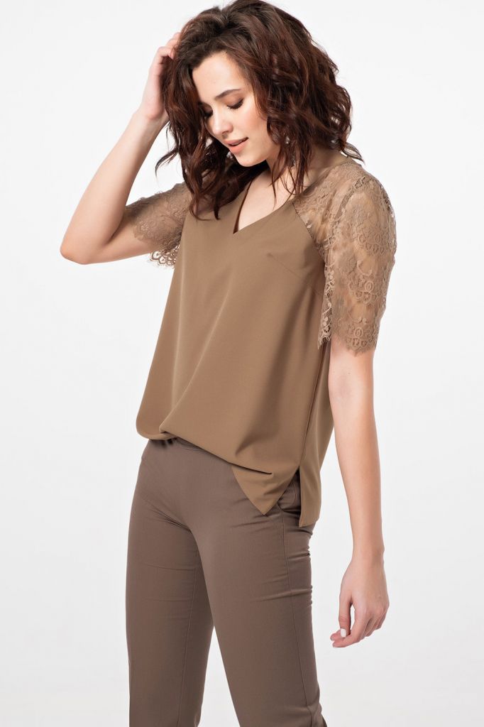 Топ с кружевом из струящейся блузочной ткани.