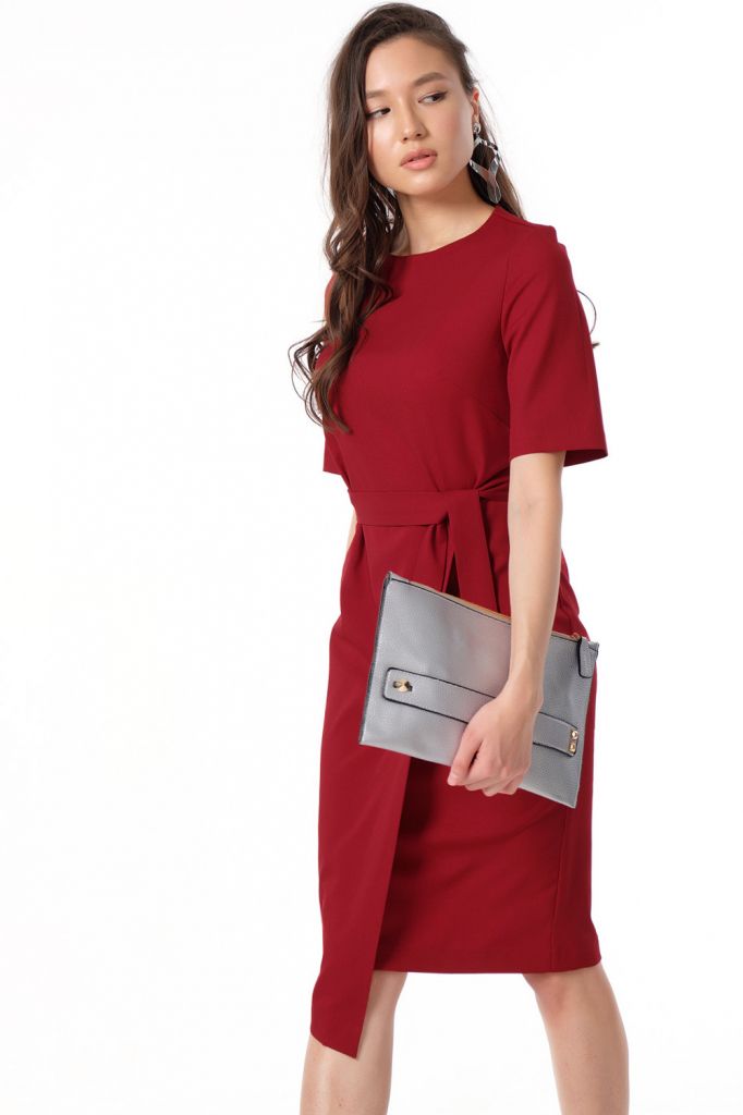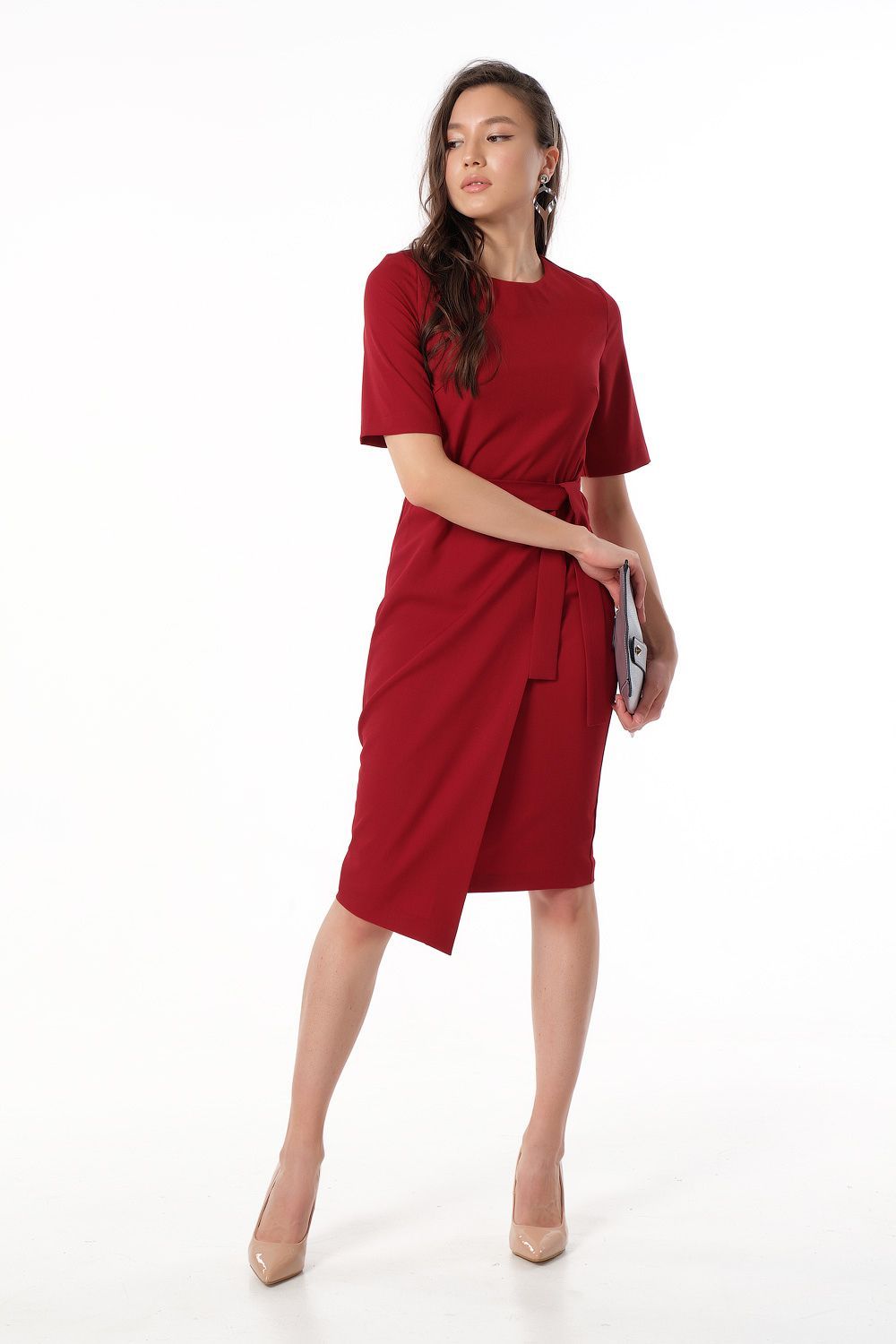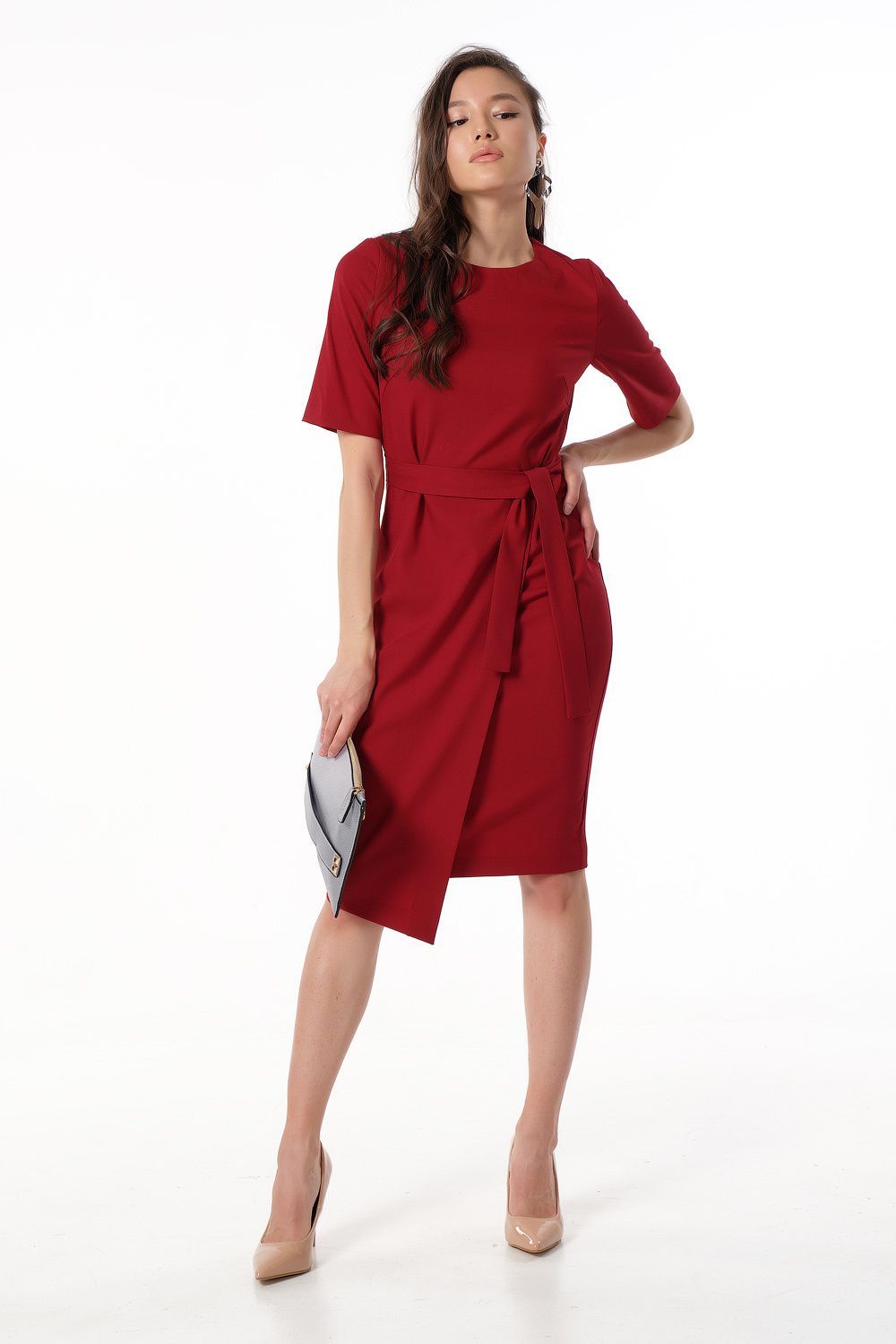 • Особенности: Платье прилегающего силуэта из струящейся ткани. Детали: горловина округлой формы, вытачки, юбка с запахом, асимметричный низ, пояс в комплекте. Рукав втачной. Застежка по спинке на потайную молнию.