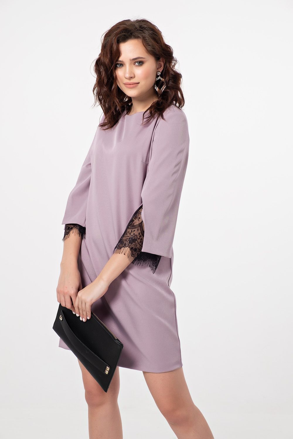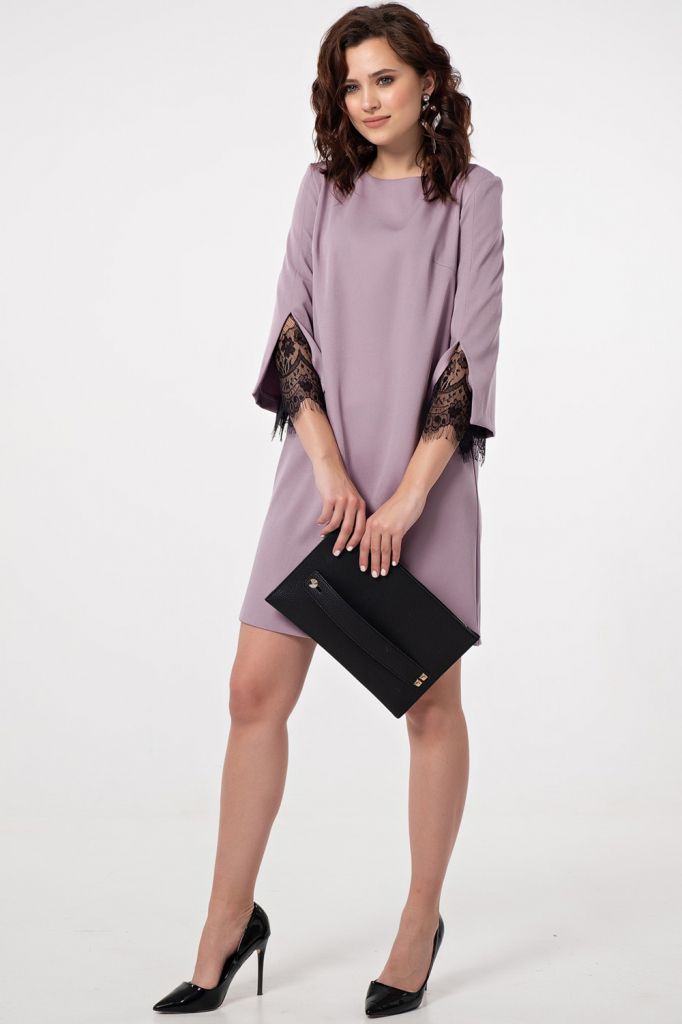 • Особенности: Платье с кружевом по рукаву. Детали: горловина округлой формы, прямой силуэт. Рукав втачной, 3/4, разрезы, кружево по низу. Застежка по спинке на потайную молнию.