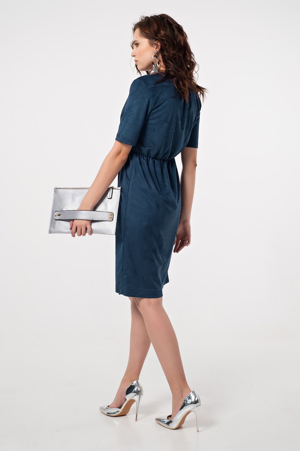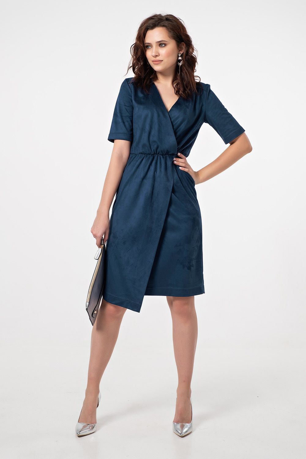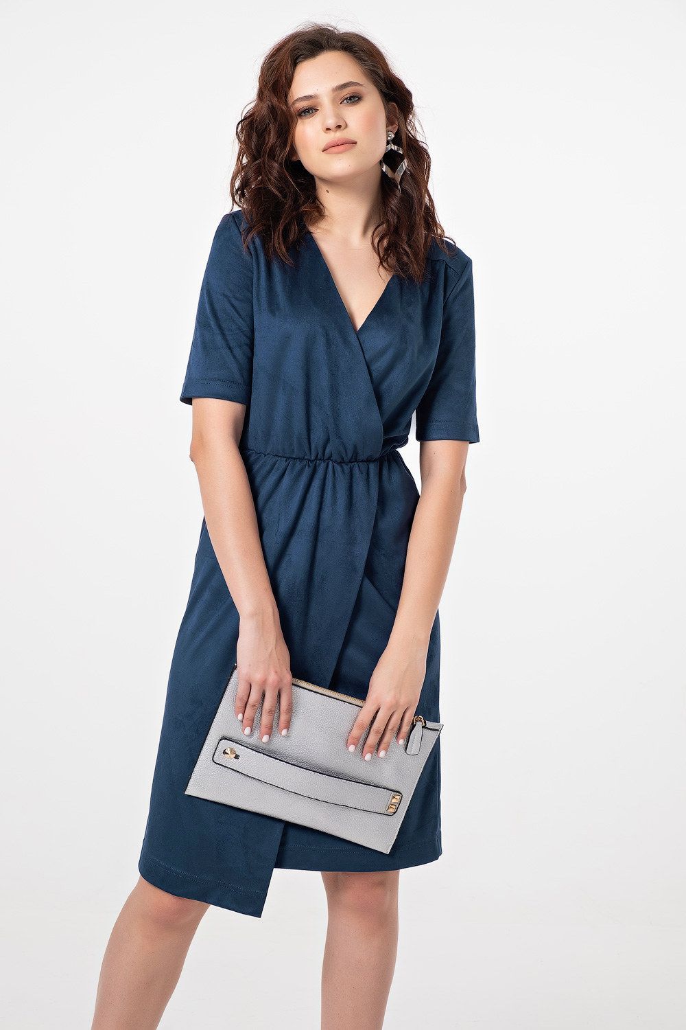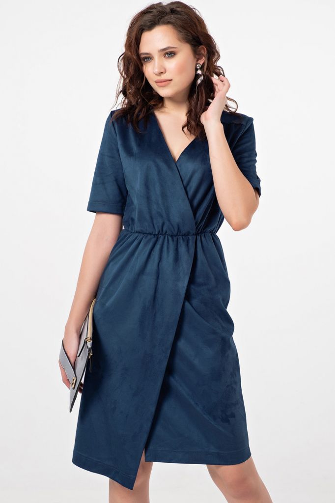 • Особенности: Внимание: Платье из искусственной замши. Отрезное по талии. Детали: кокетка по спинке переходящая на перед, рукав втачной, по переду иммитация запаха, по талии сборка на резину, отлетная часть юбки выполнена с удлинением. Без застежки.