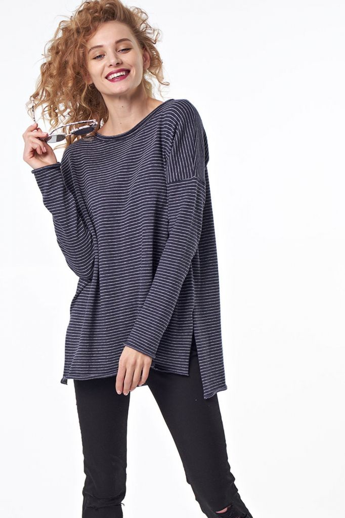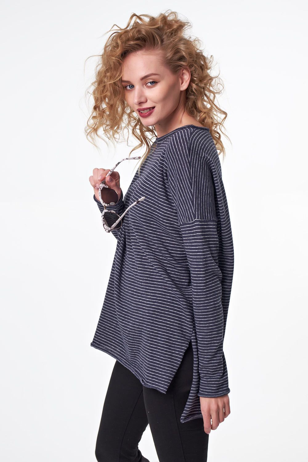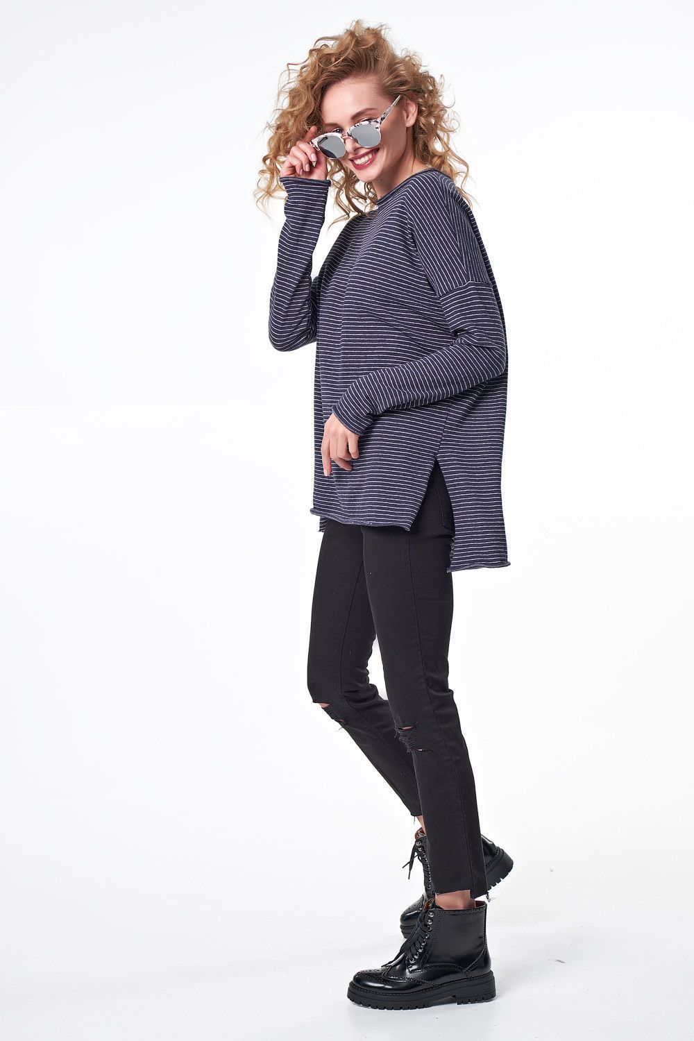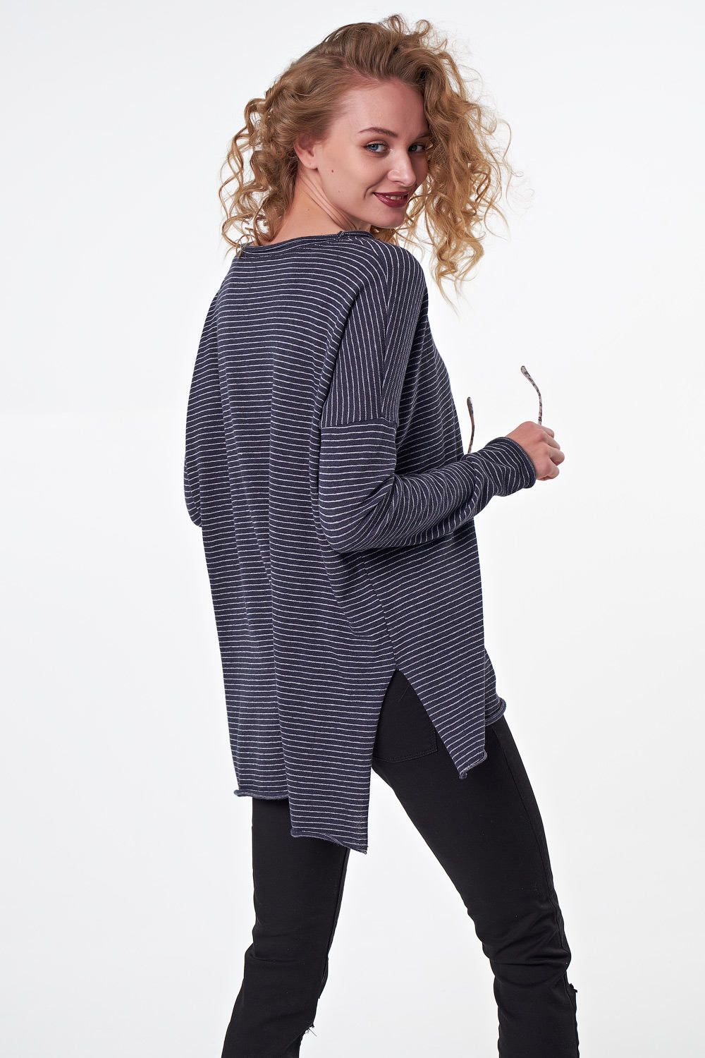 • Особенности: Кофта прямого силуэта из трикотажа в полоску. Детали: горловина округлой формы, обработана окантовкой. Рукав втачной, пройма спущенная, по низу рукава декоративные завязки.