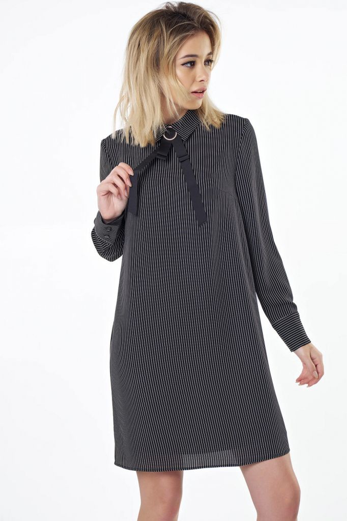 • Особенности: Платье из шифона на подкладке с декоративным чокером в комплекте, чокер съемный. Детали: отложной воротник с застежкой по спинке, вытачки, рукав втачной на манжете.