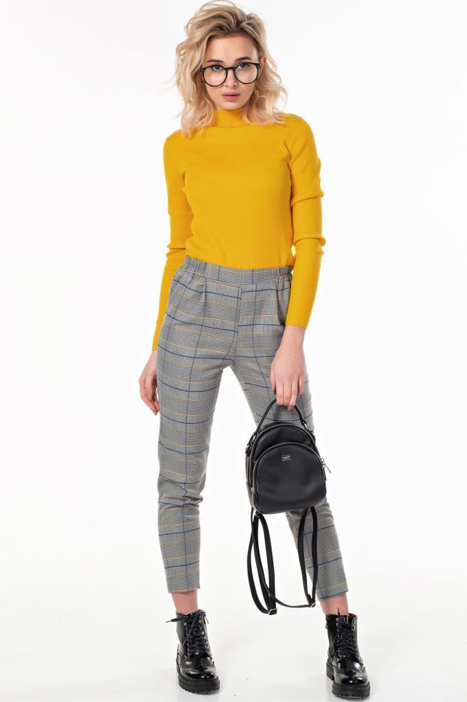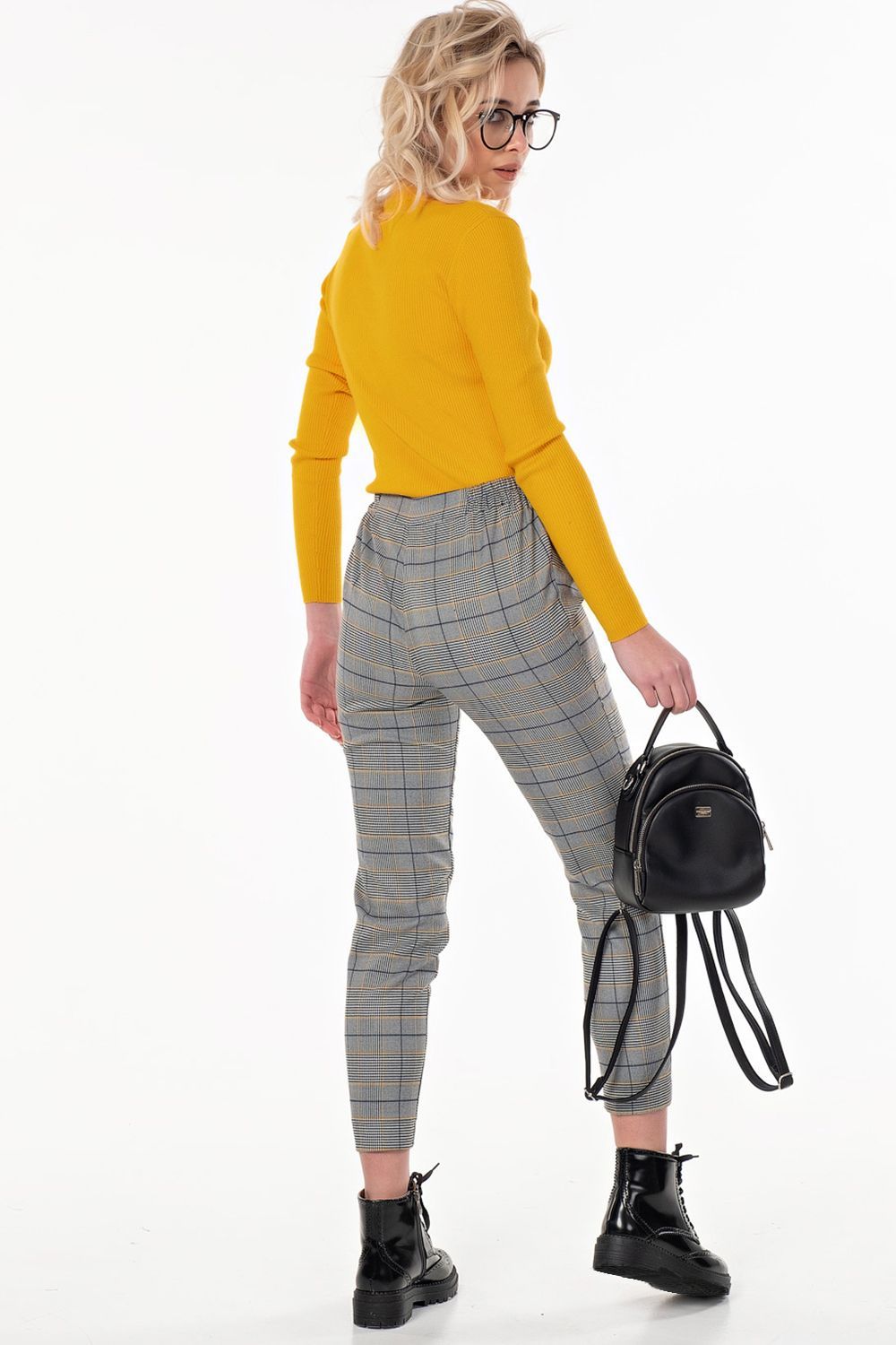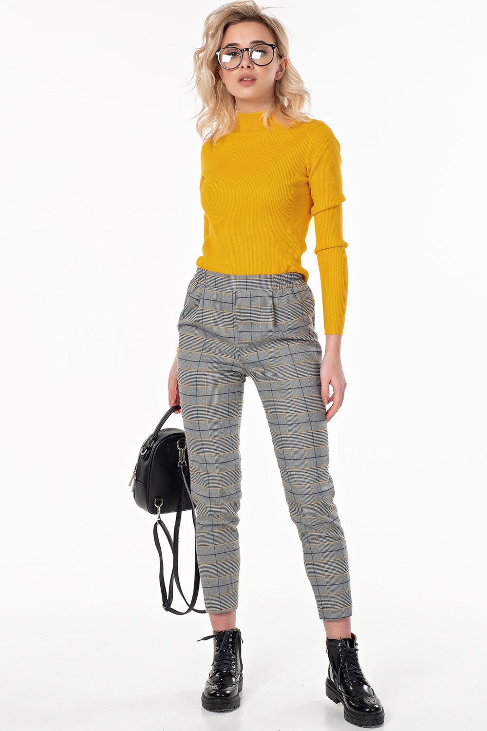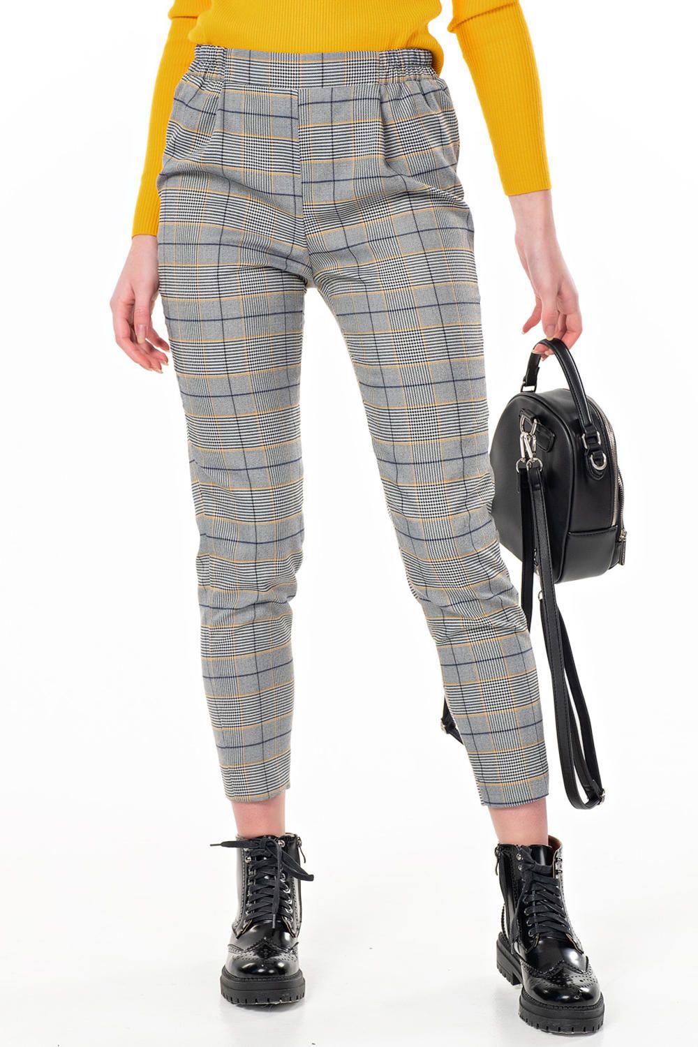 • Особенности: Брюки полуприлегающего силуэта из костюмной ткани в клетку. Детали: притачной пояс с резинкой в боковых вставках, защипы, зауженный книзу силуэт. Данная модель не предусматривает совпадения рапорта клетки.