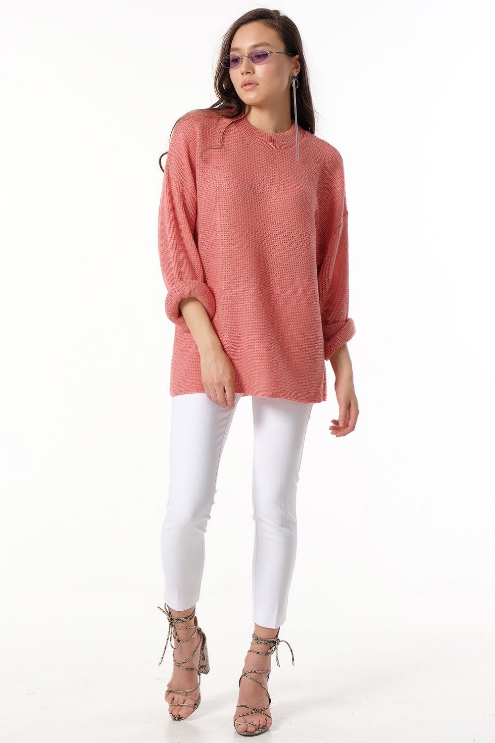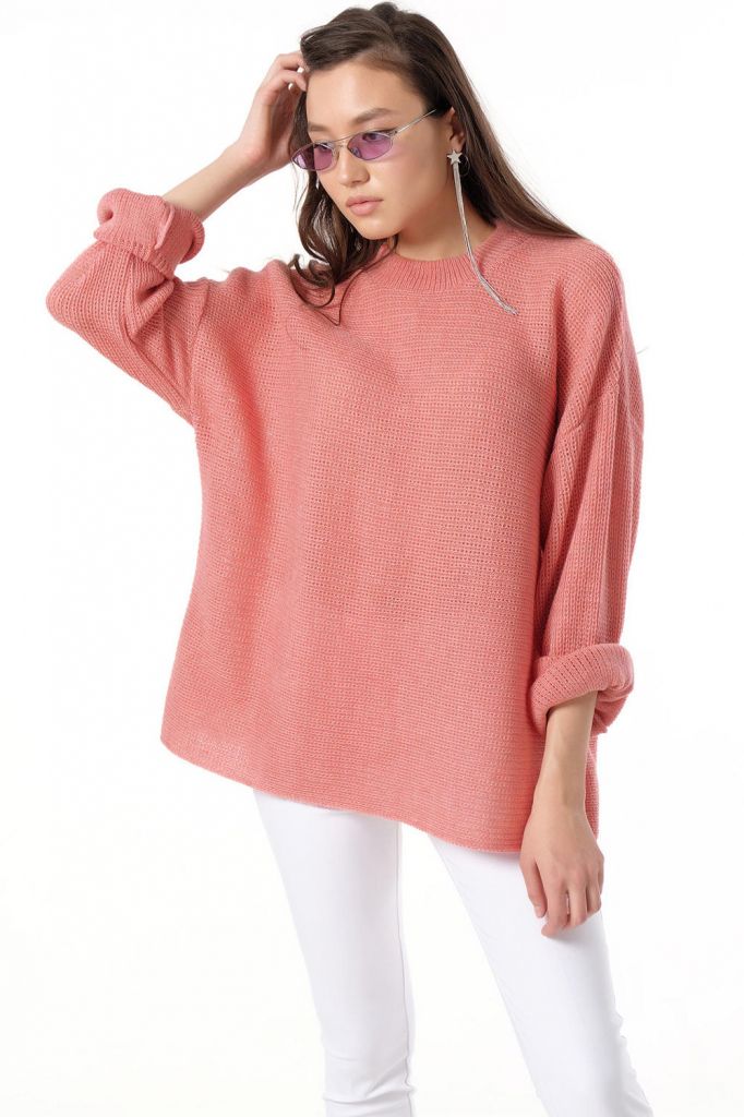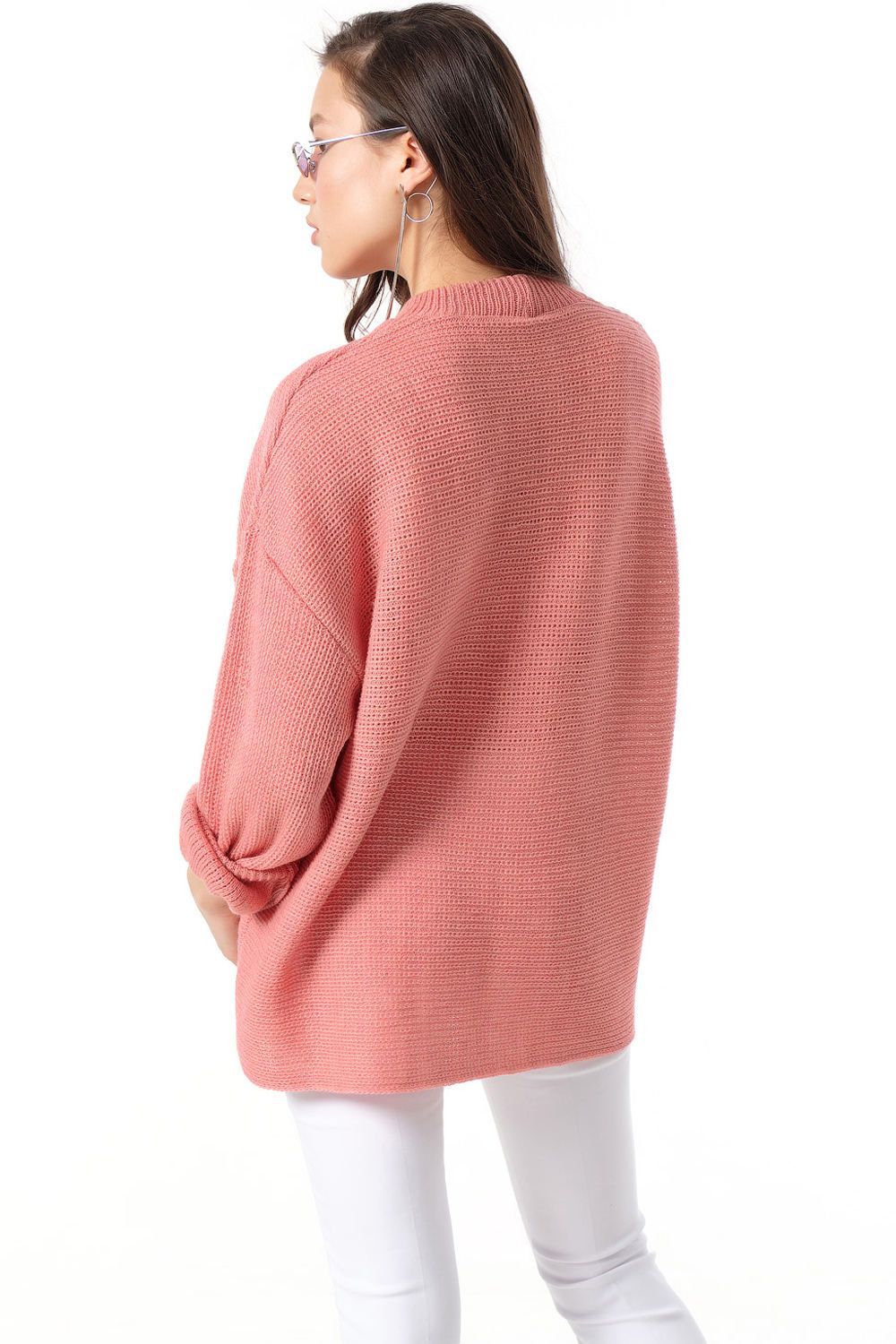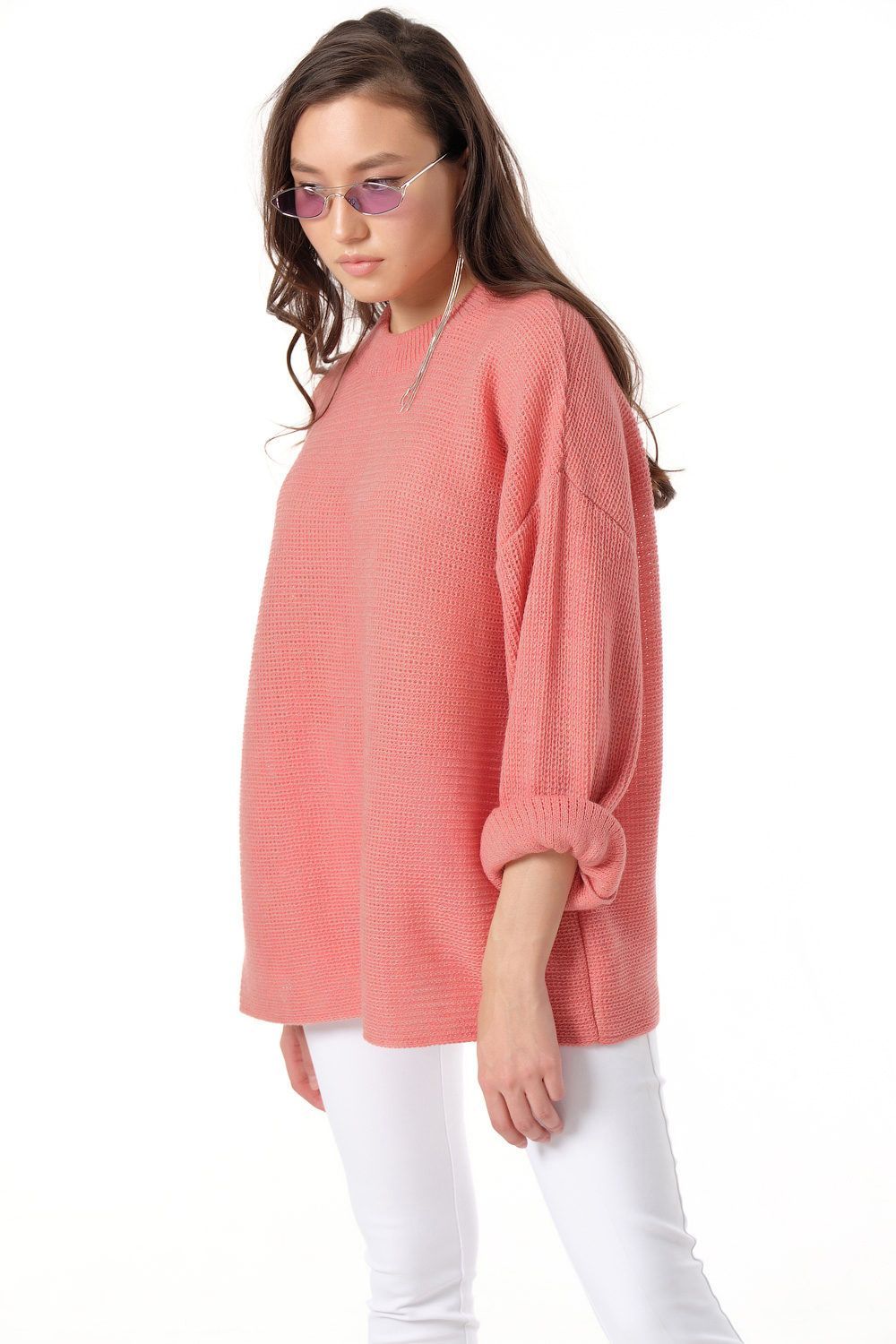 Особенности: Джемпер выполнен фактурной вязкой. Вырез горловины, оформлен двойной резинкой в рубчик. Низ рукава оформлен широкой, цельновязаной, отложной манжетой.