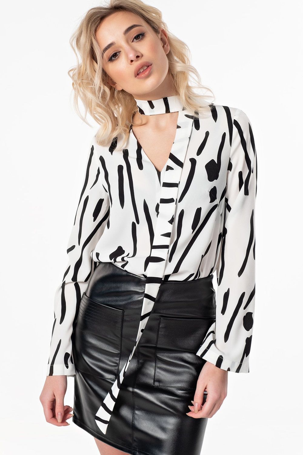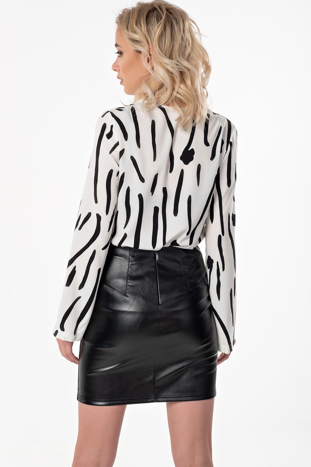• Особенности: Юбка-мини прямого силуэта из искусственной кожи. Детали: средний шов с отстрочкой, накладные карманы с отстрочками, по спинке - фигурные кокетки и застежка на молнию.