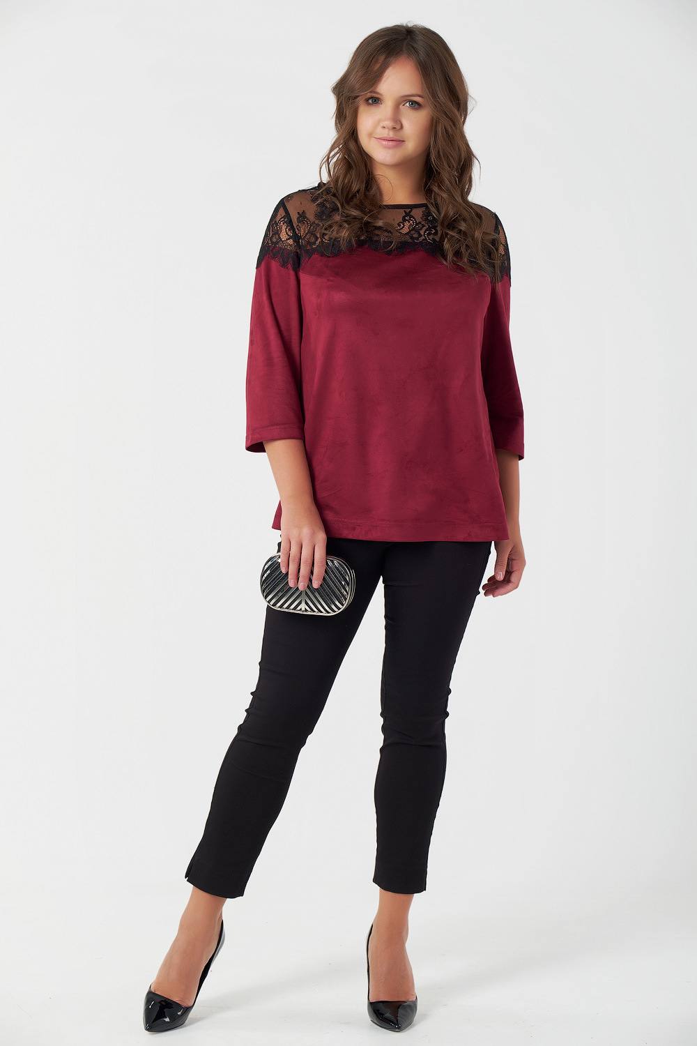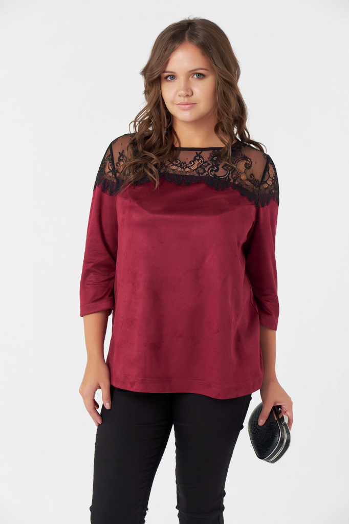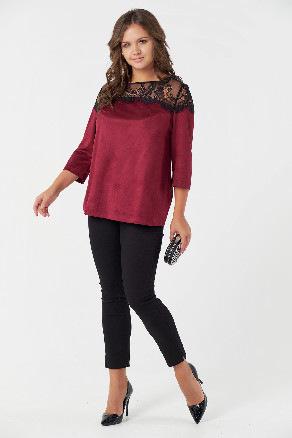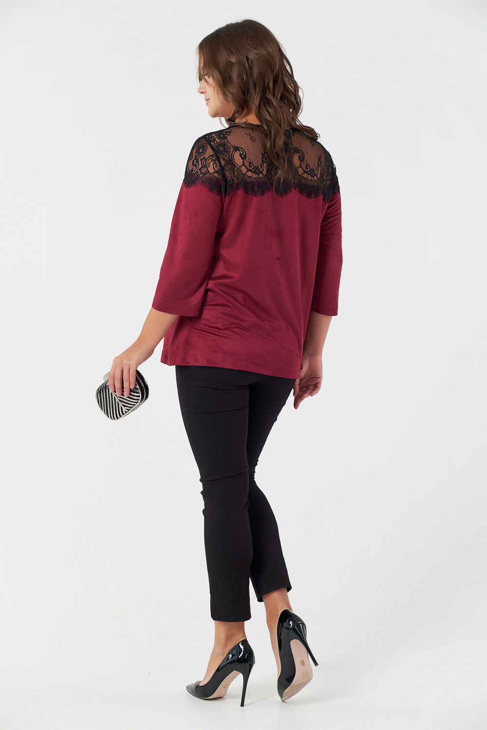 • Особенности: Трикотажный джемпер из искусственной замши с кружевной кокеткой. Детали: горловина округлой формы, кружевная кокетка по переду, спинке и плечу, втачной рукав.