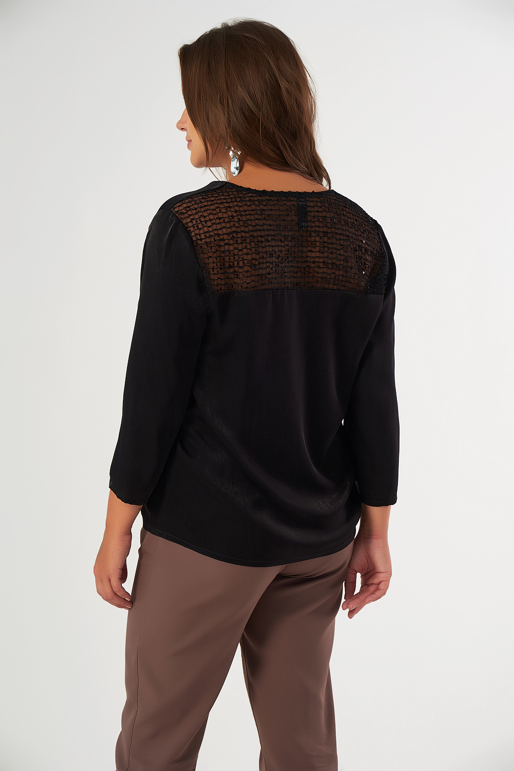 • Особенности: блуза из искусственного шелка с декоративной кружевной кокеткой по спинке