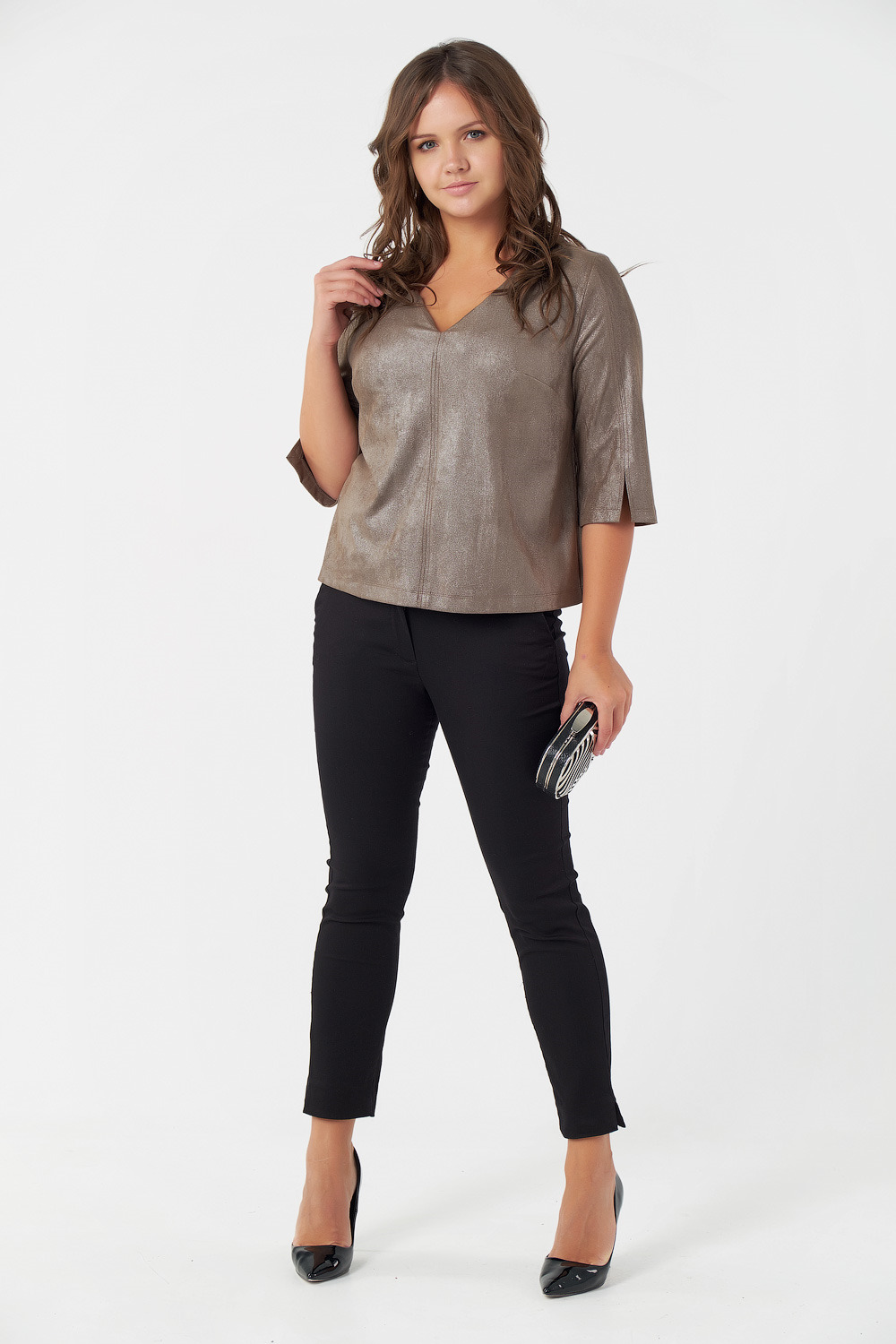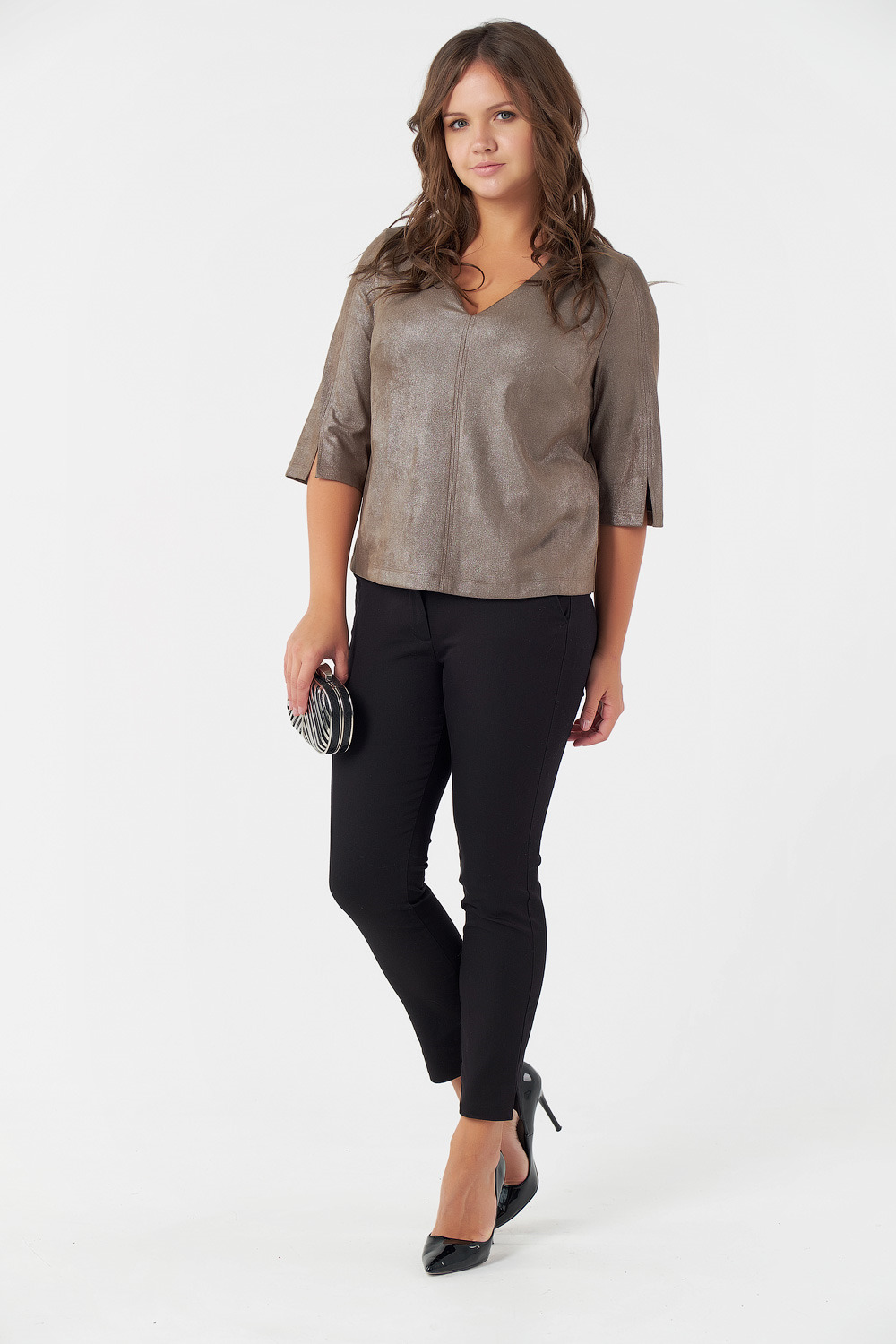 • Особенности: блуза с отстрочками, разрезами по рукавам из искусственной замши с серебристым напылением