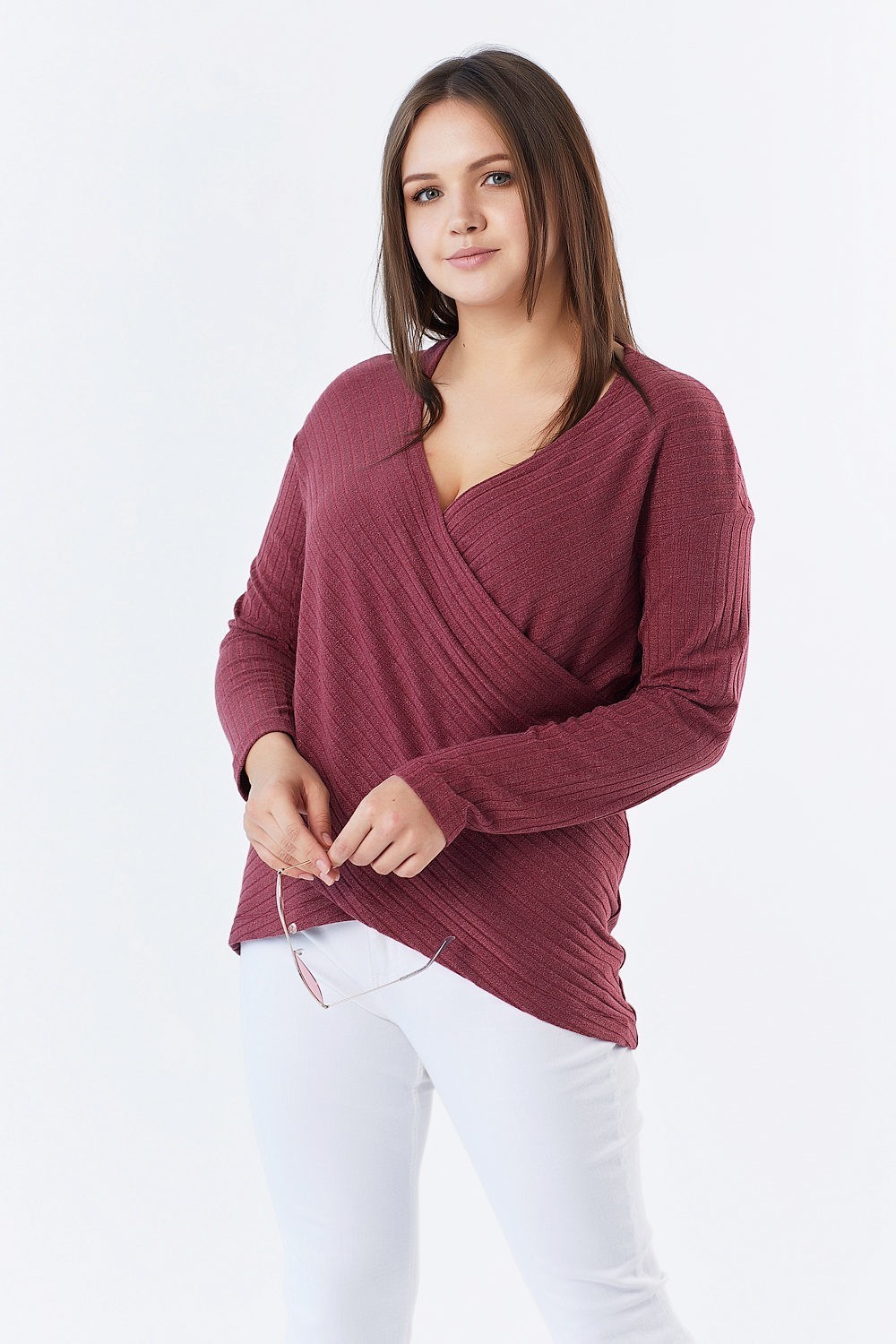 • Особенности: Джемпер прилегающего силуэта из плотного трикотажа типа "лапша". Детали: двойной перед с имитацией запаха, асимметричная линия низа. Без застежки.