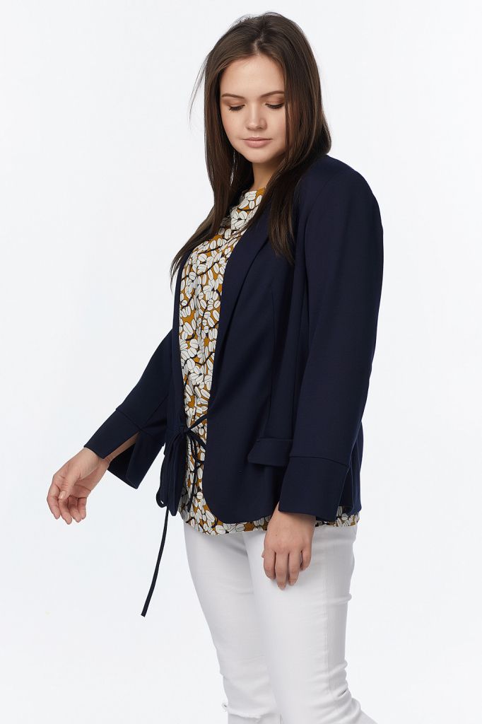 • Особенности: Жакет прямого силуэта из плотного трикотажа без подкладки. Детали: английский воротник со скругленными углами, накладные клапаны по переду, притачная манжета с разрезом, застежка в виде завязок из основного материала.