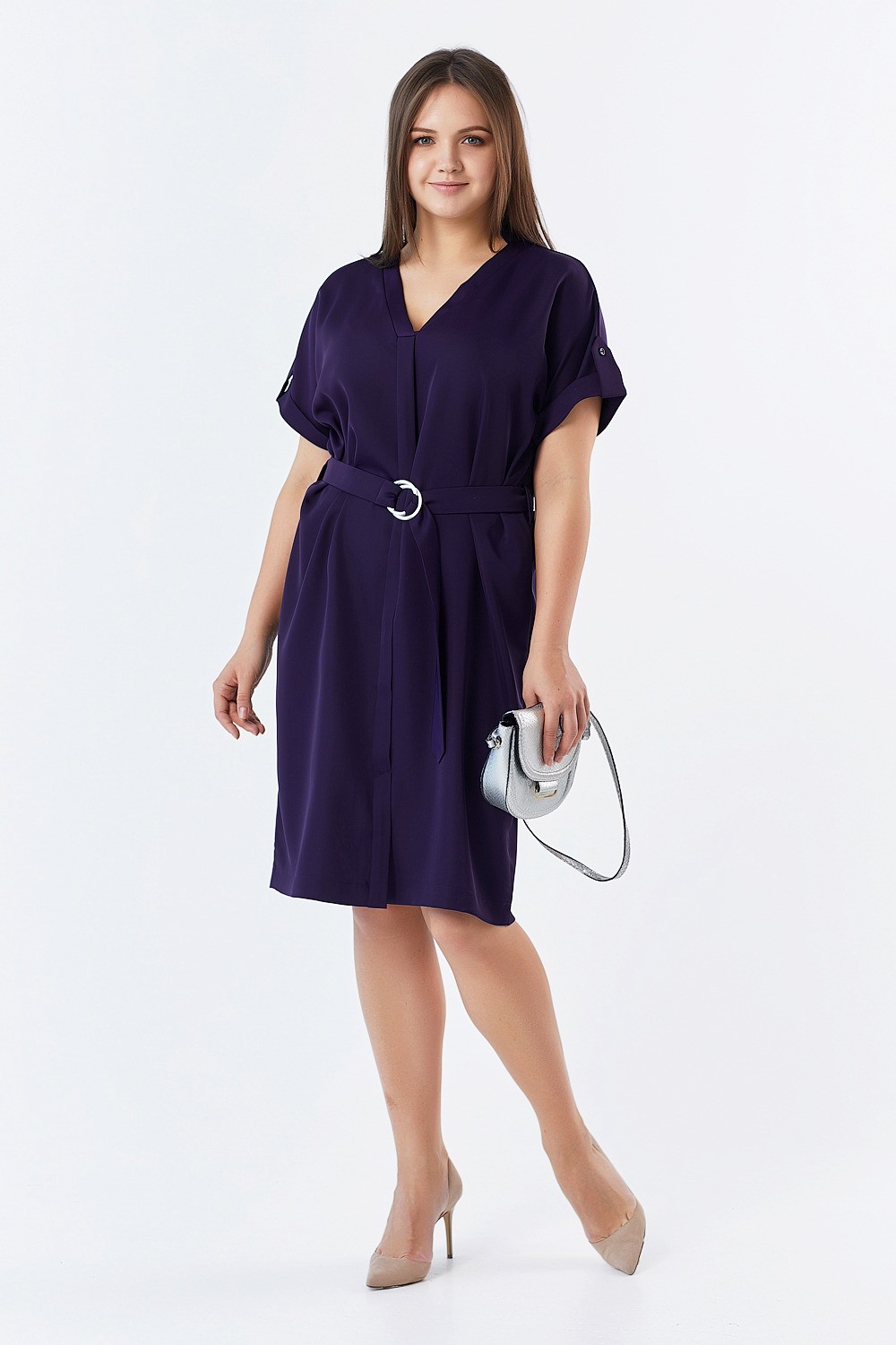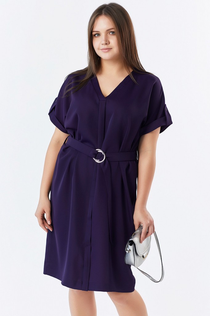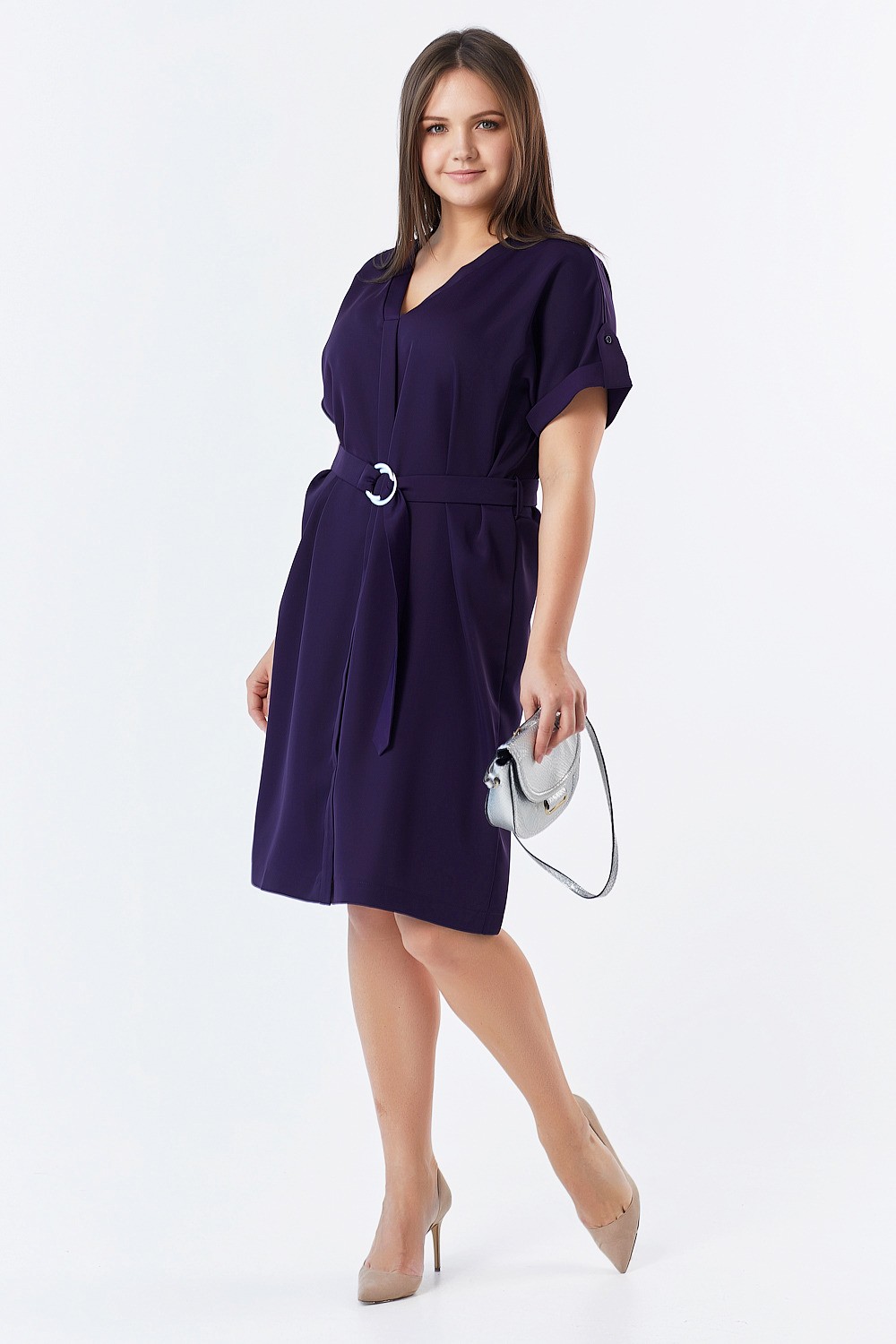 • Особенности: Платье полуприлегающего силуэта с имитацией планки по переду и пояском с пряжкой в комплекте. Цельновыкроенный короткий рукав с отворотом и патой.