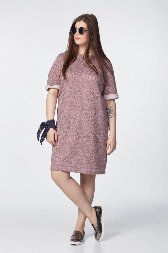 • Особенности: Платье прямого силуэта из трикотажа "футер". Детали: горловина обработана бейкой, по переду выполнена декоративная настрочка, короткий рукав с отворотом. Без застежки.