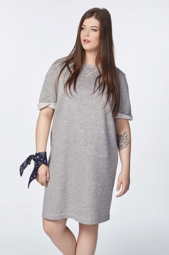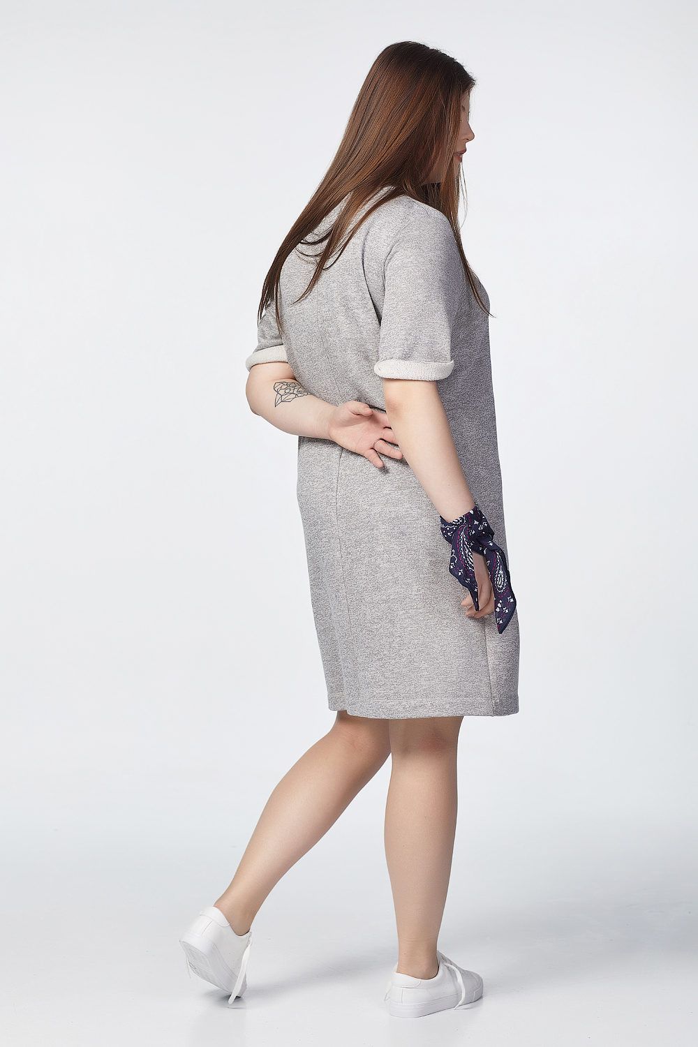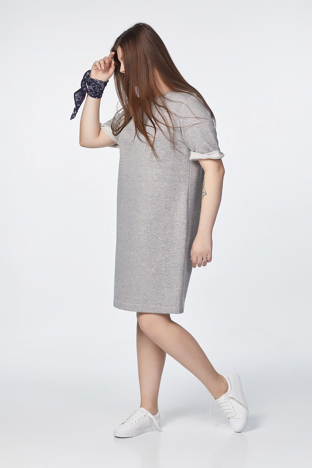 • Особенности: Платье прямого силуэта из трикотажа "футер". Детали: горловина обработана бейкой, по переду выполнена декоративная настрочка, короткий рукав с отворотом. Без застежки.