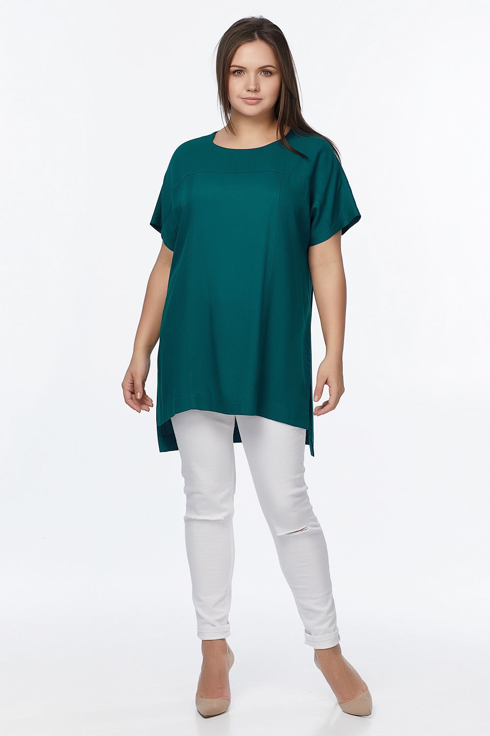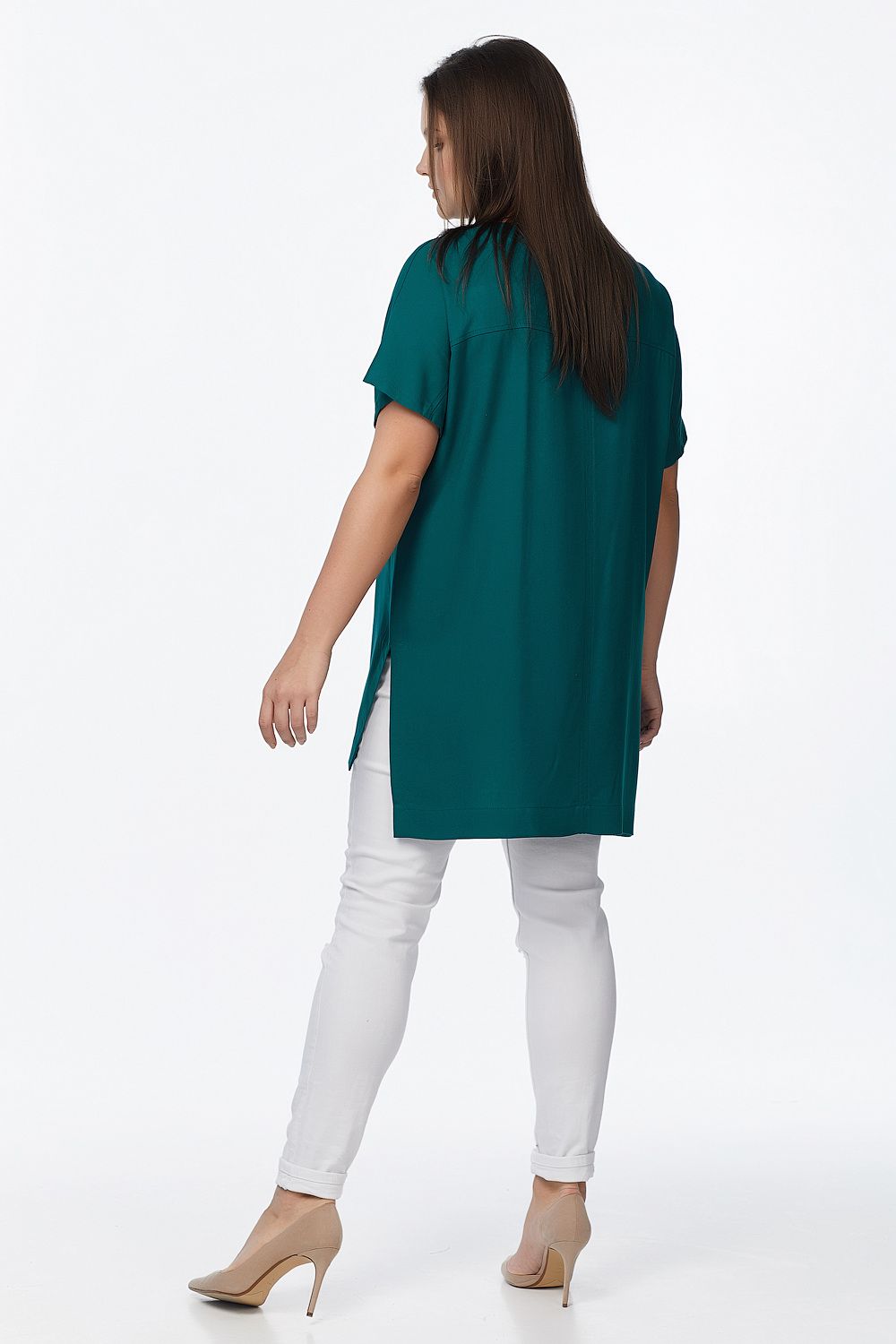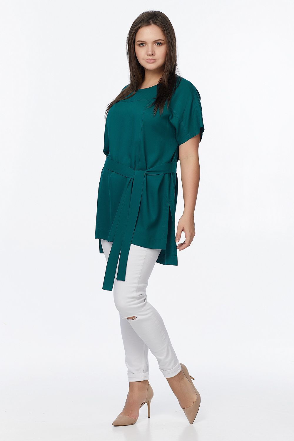 • Особенности: Туника прямого силуэта из мягкой плательной ткани. Детали: цельнокроеный рукав, кокетки по переду и спинке, два рельефных шва по переду с отстрочкой, средний шов по спинке отстрочен двойной строчкой, съемный пояс в комплекте. Без застежки.