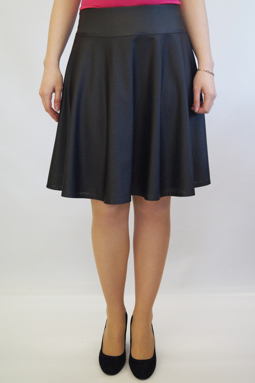 Модель на широкой кокетке, полусолнце ложиться мягкими фалдами.