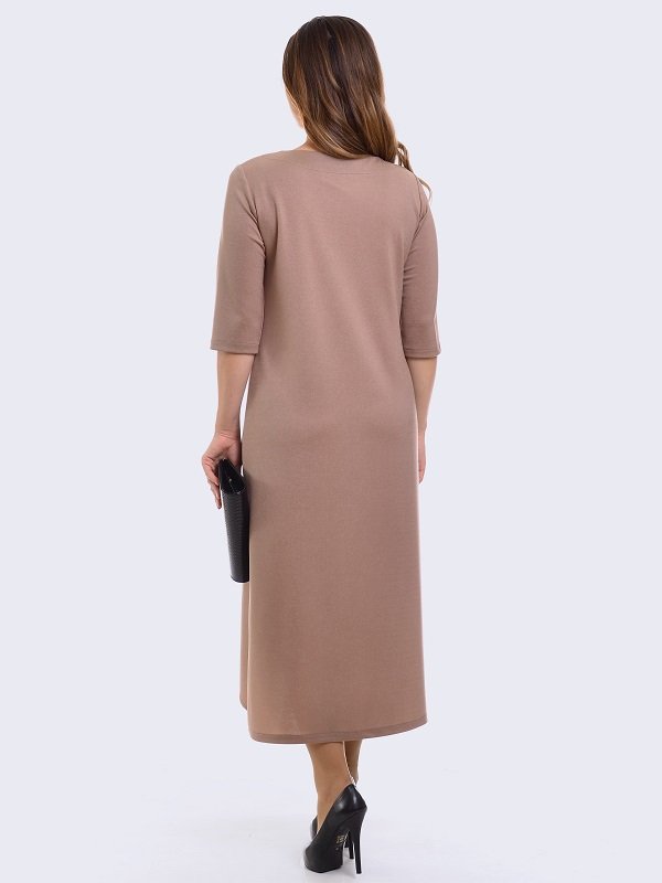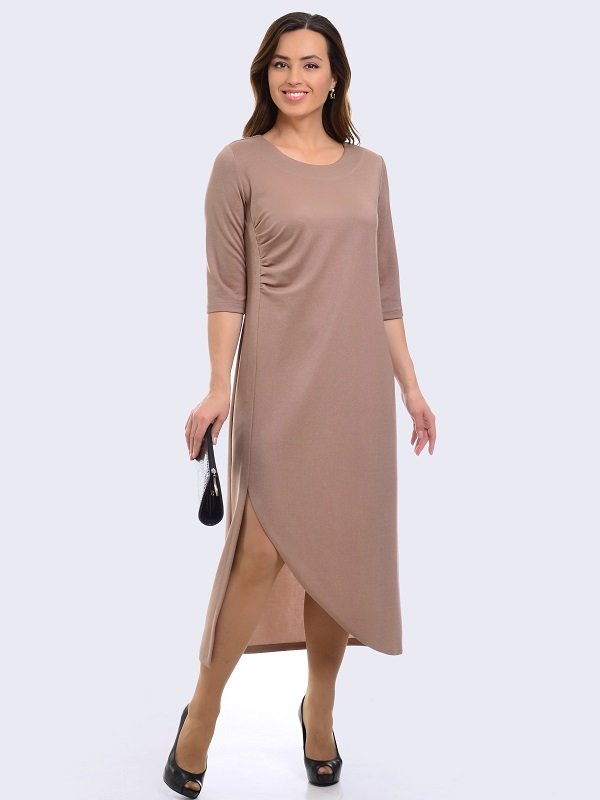 Нарядное платье из трикотажной ткани Скуба длиной миди, с фигурным разрезом.
