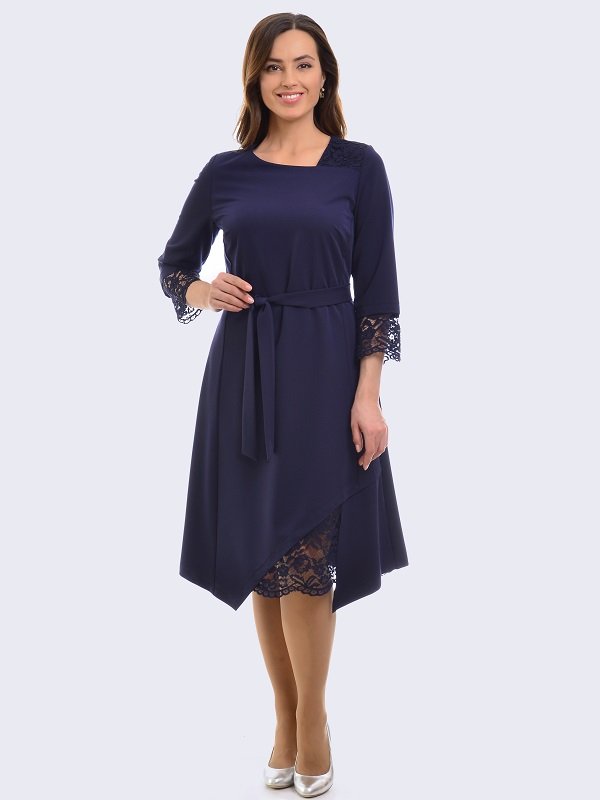 Платье из плательной ткани со вставками из кружева по рукавам, по подолу и по плечу.