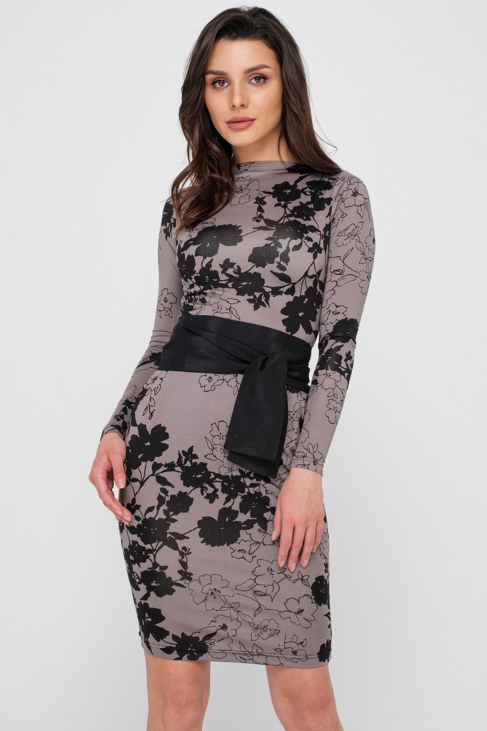 • Особенности: Платье прилегающего силуэта с втачным длинным рукавом и поясом-кушаком в комплекте. Отрезное по талии с небольшими защипами.