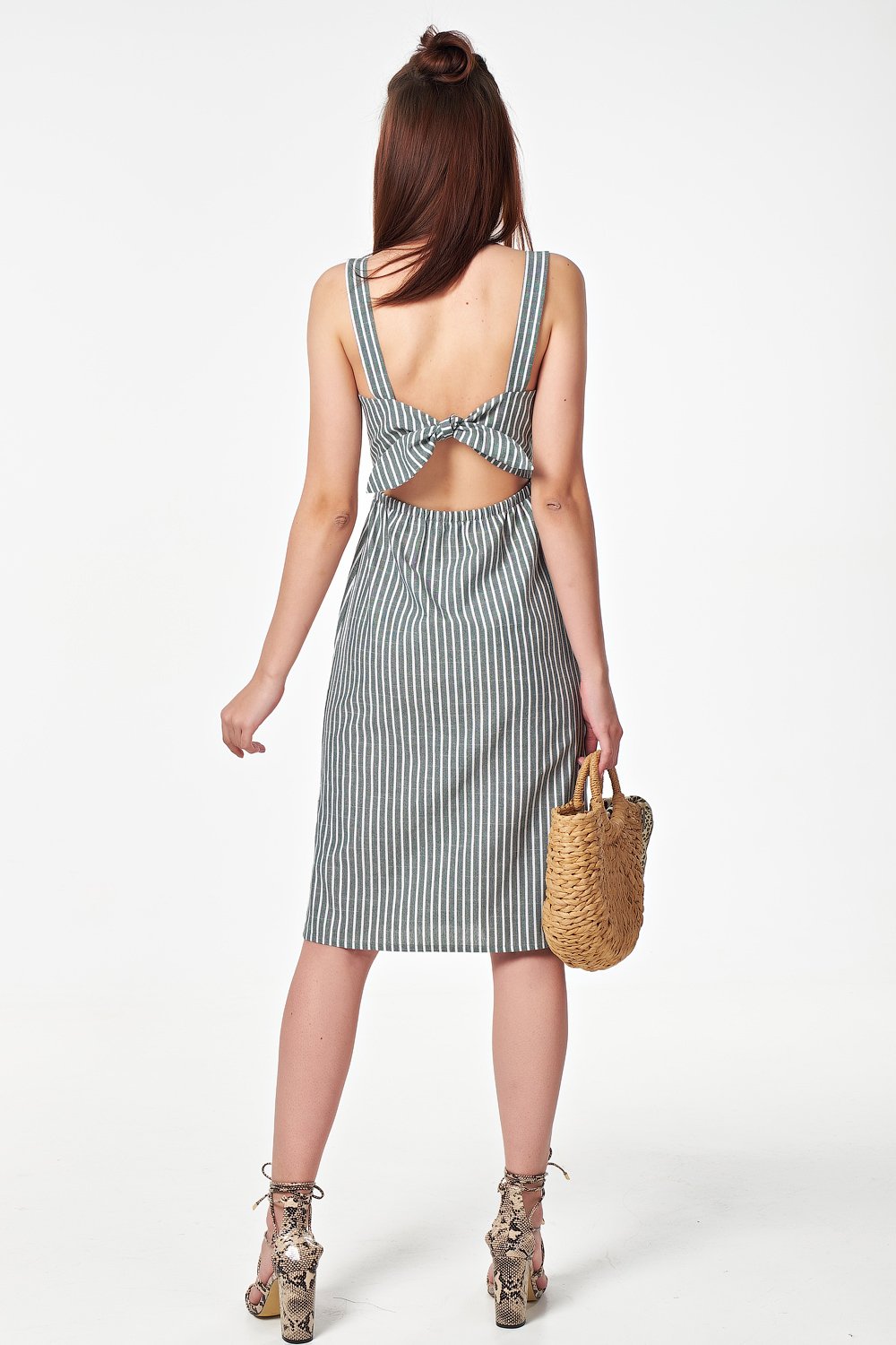 • Особенности: Платье-сарафан с завязкой по спинке. Детали: широкие бретели, рельефы, пояс притачной, планка с застежкой на петли-пуговицы, сборка на резинку по спинке на талии.