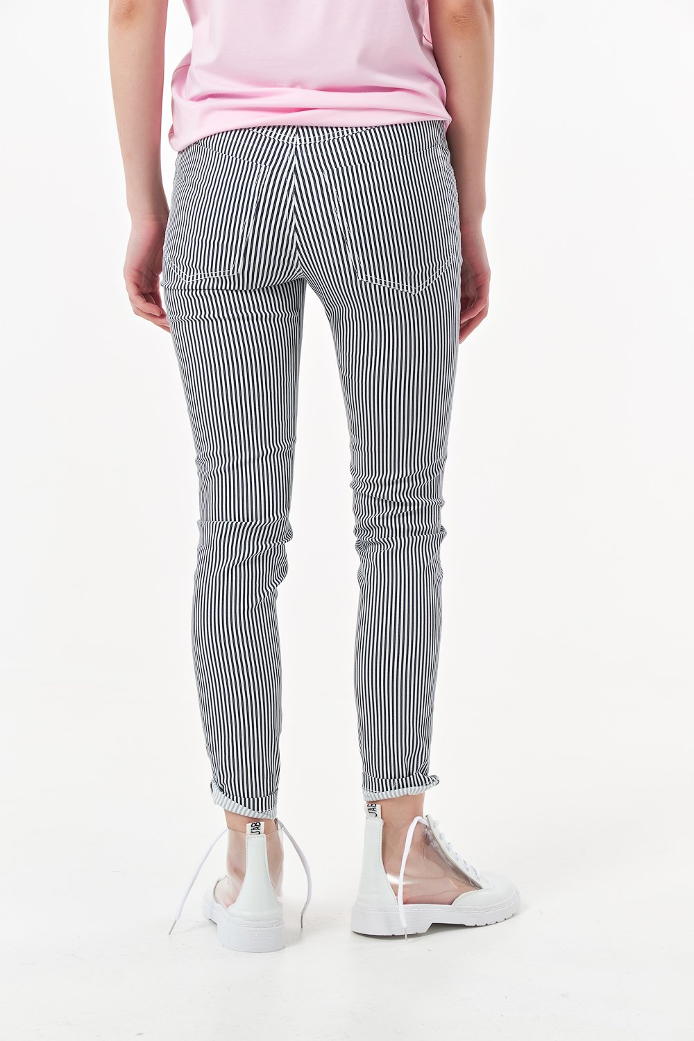 • Особенности: Брюки из джинсовой ткани. Детали: фигурная кокетка на передних половинках и задних половинках брюк, двойная настрочка по швам.