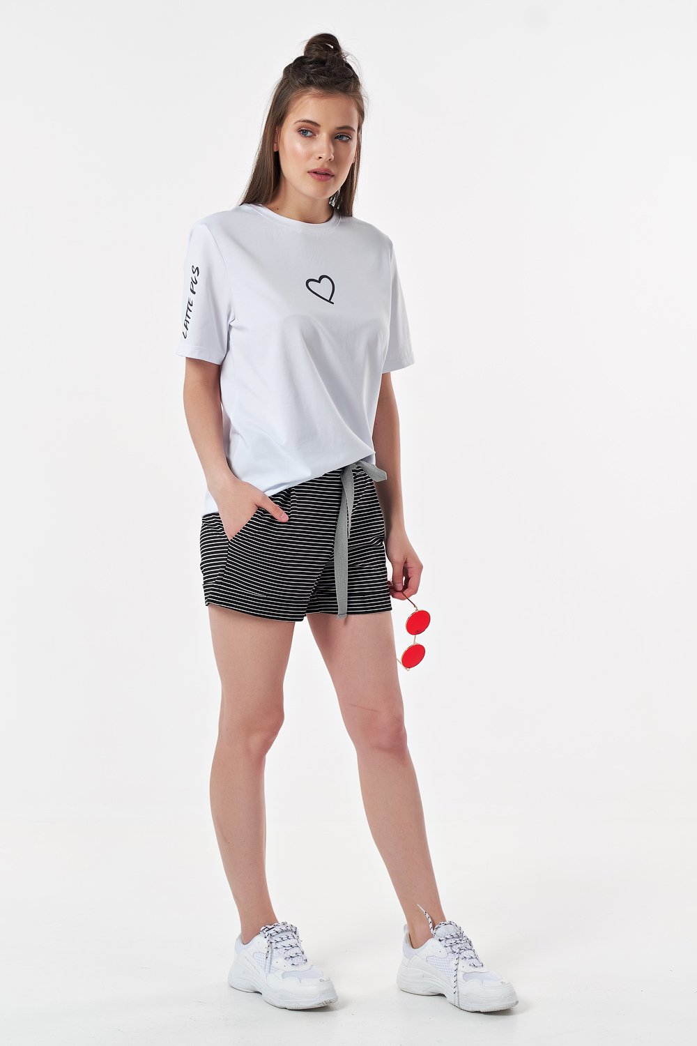 • Особенности: Шорты с притачным поясом. Детали: в поясе выполнена кулиска со шнуром, защипы по талии, по низу отвороты, карманы в боковых швах.