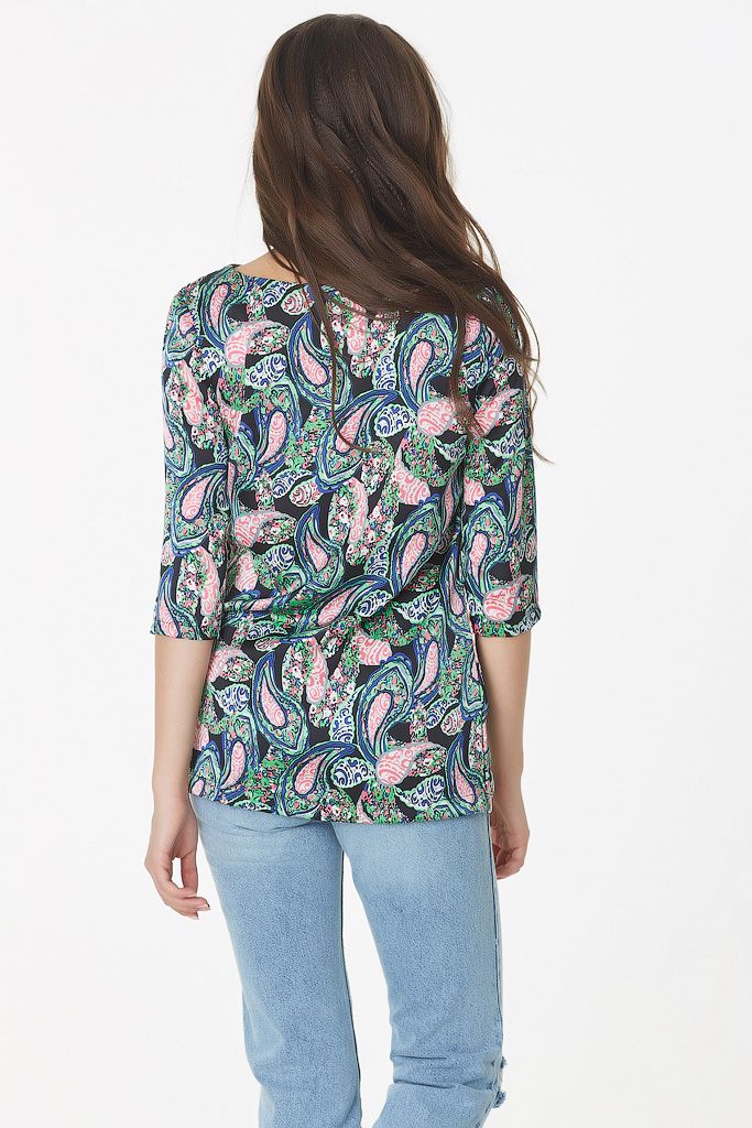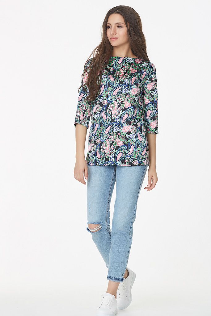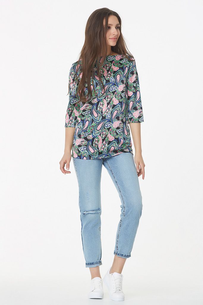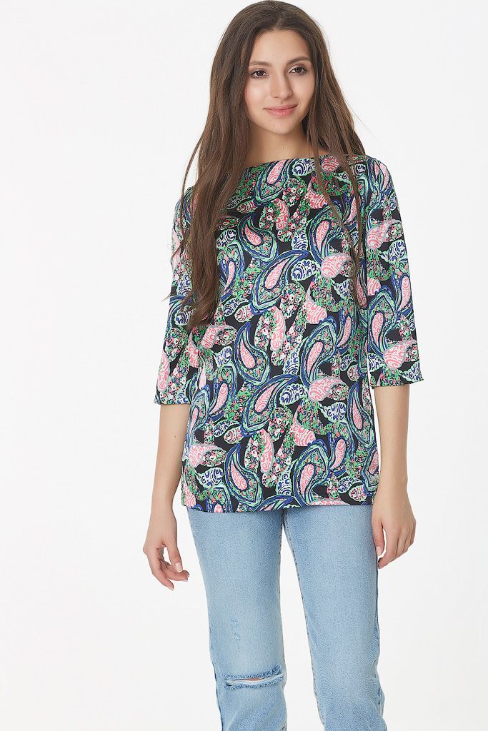 Атласная блуза сшита из стрейчевого атласа, с рукавами 3/4 и вырезом горловины в форме "лодочка". Модель выполнена в свободном романтичном стиле. Длина изделия по спинке около 68 см (44 р), около 72 см (50 р). Ремень в комплект не входит.