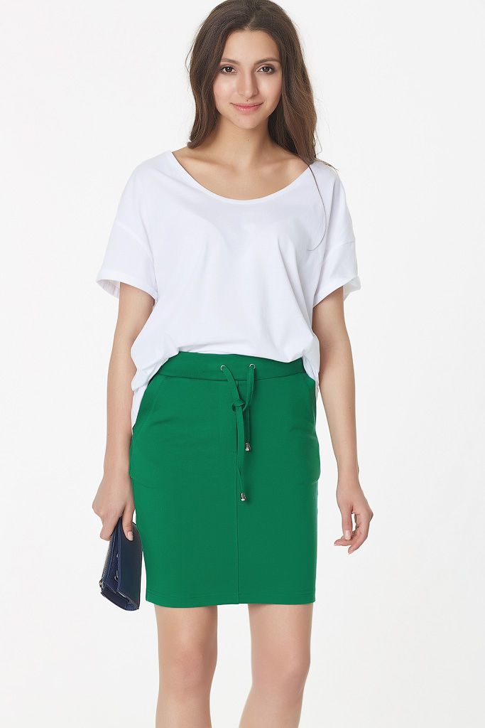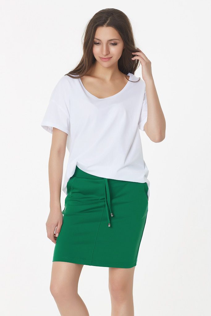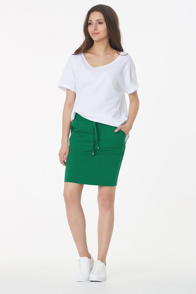 Современная мини-юбка с эластичным поясом на резинке и карманами по бокам. Изделие выполнено из плотного трикотажа Ромо лайт, пояс оформлен декоративным шнурком. Длина юбки по спинке около 47 см (44 р), около 52 см (48р).