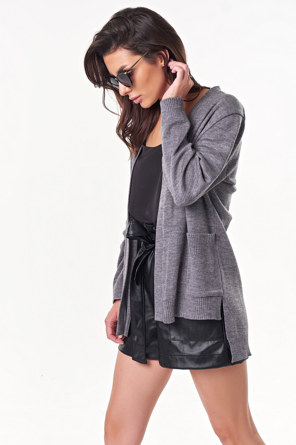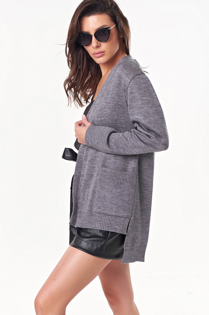 Особенности: Вязаный кардиган прямого силуэта выполнен из полушерстяной пряжи с ассиметричным низом. Кардиган оформлен обтачкой по переду. Широкие рукава оформлены резинкой.