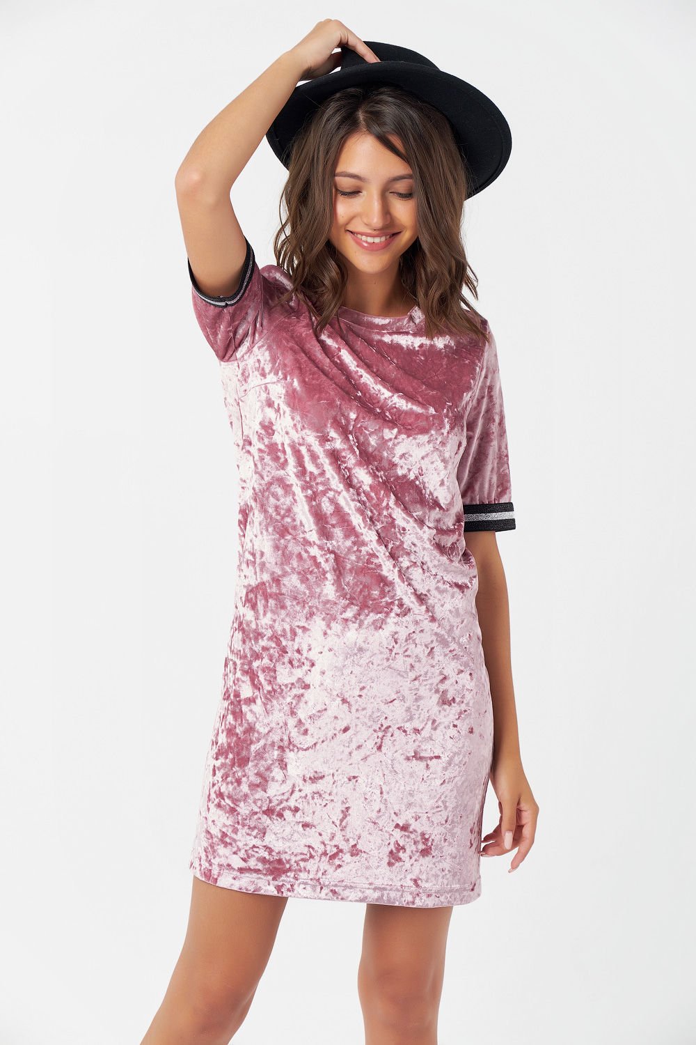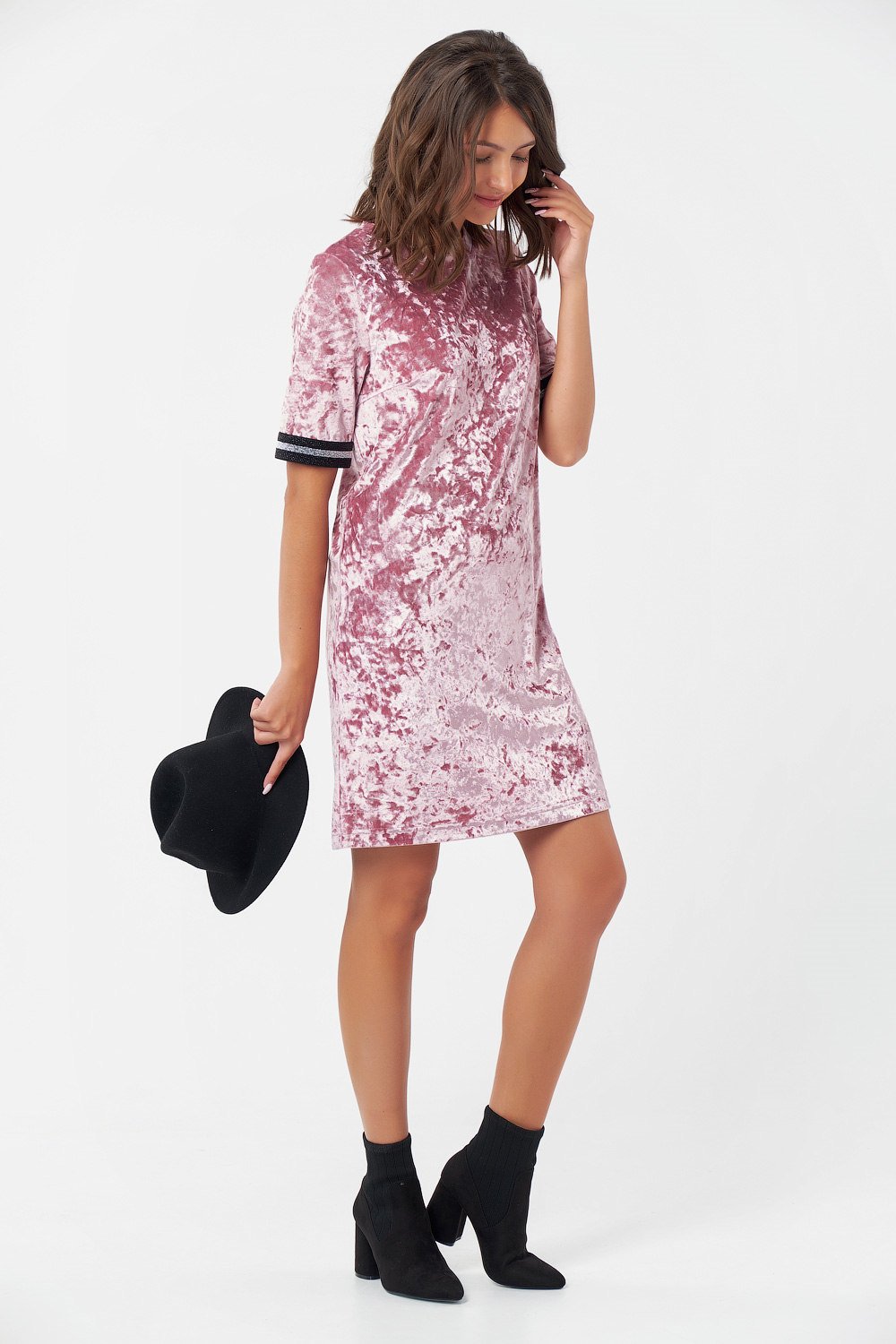 • Особенности: Платье прямого силуэта из бархата. Детали: горловина обработана бейкой, по низу рукава притачана декоративная резина. Без застежки.