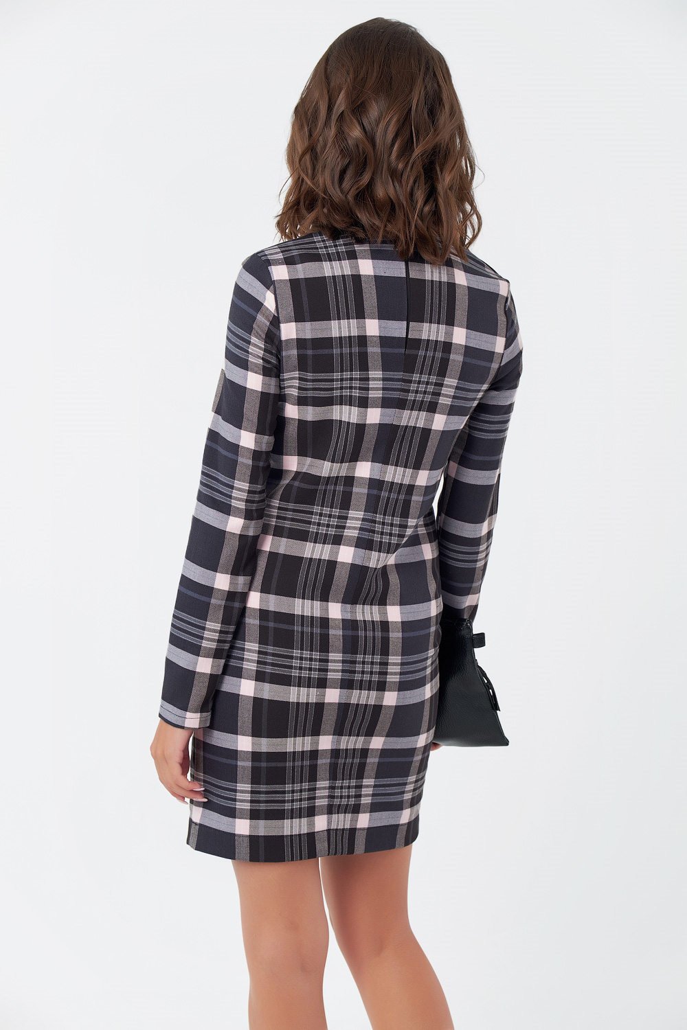 • Особенности: Платье прямого силуэта из костюмной ткани. Детали:горловина обработана обтачкой, втачной рукав, застежка на молнию в среднем шве спинки.