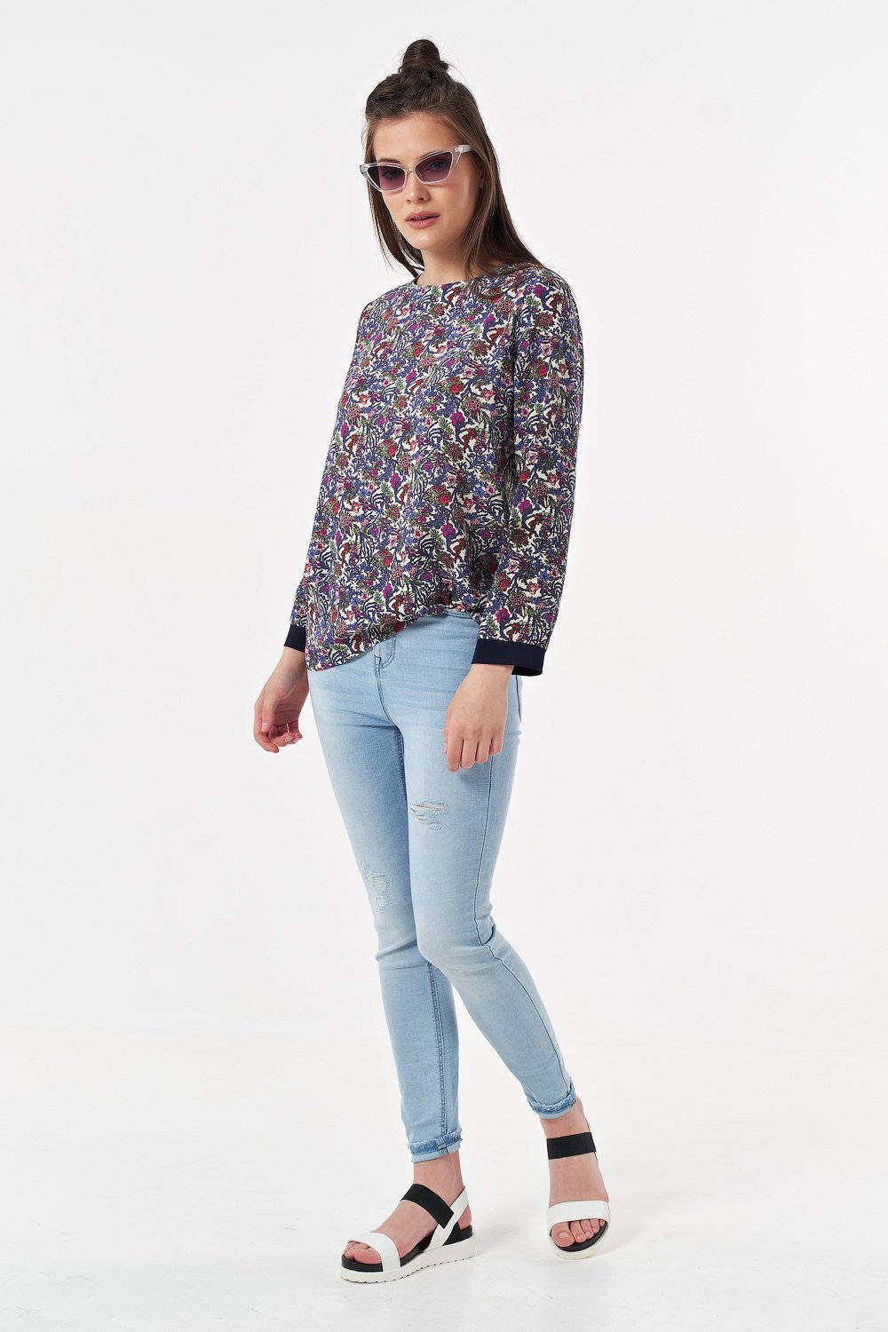 • Особенности: Блуза свободного силуэта из хлопкового штапеля. Длина рукава 7/8, выполнены на трикотажных манжетах.