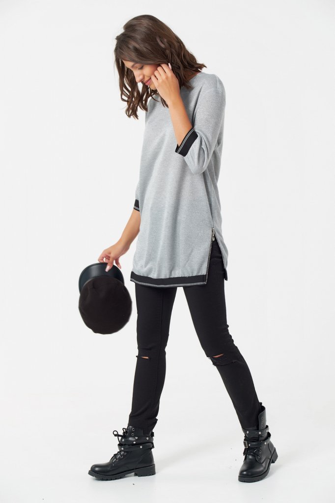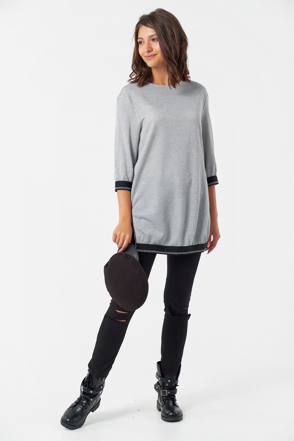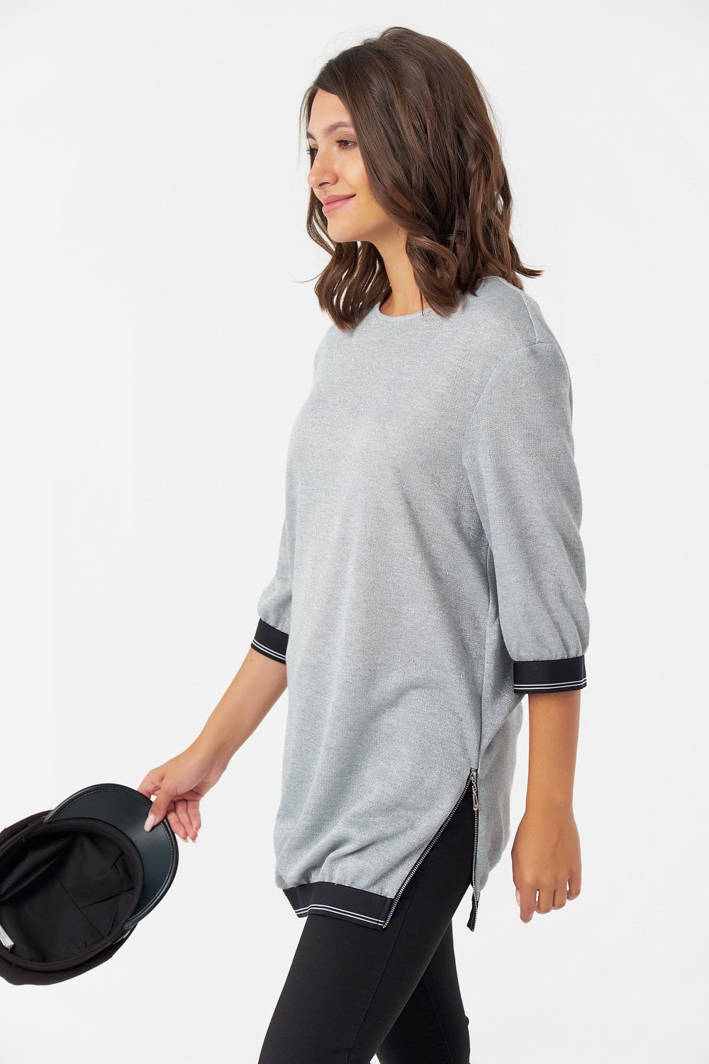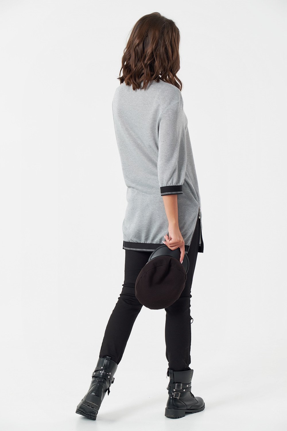 • Особенности: Туника прямого силуэта, имеет свободную посадку (без прилегания)! Выполнена из трикотажа с люрексом. Детали: горловина округлой формы, обработана окантовкой, низы рукавов и изделия обработаны декоративной плотной резиной, в боковых швах - металлические молнии серебристого цвета.