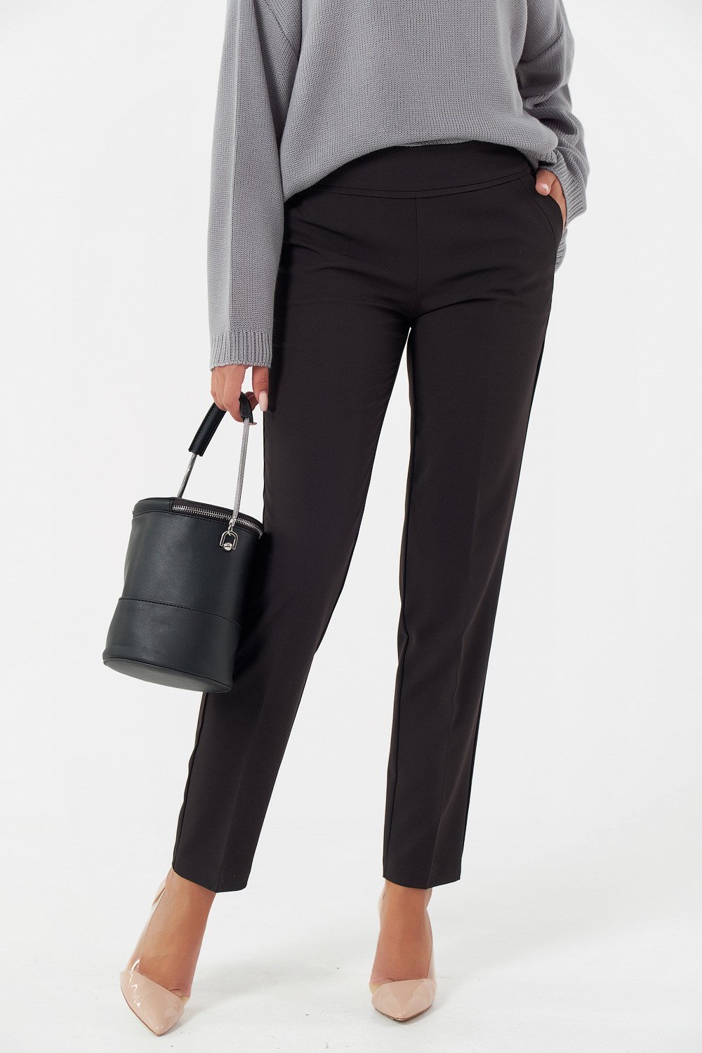 • Особенности: Брюки из костюмной ткани полуприлегающего силуэта. Детали: пояс-кокетка, декоративный кант из основной ткани по линии кокетки, боковые карманы с планкой. Застежка на потайную молнию в боковом шве.