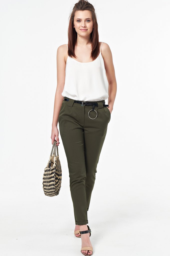 • Особенности: Брюки полуприлегающего силуэта, заужены к низу. Детали: притачной пояс, широкие шлевки, защипы, по низу - манжеты с отворотом. Ремень в комплект не входит.
