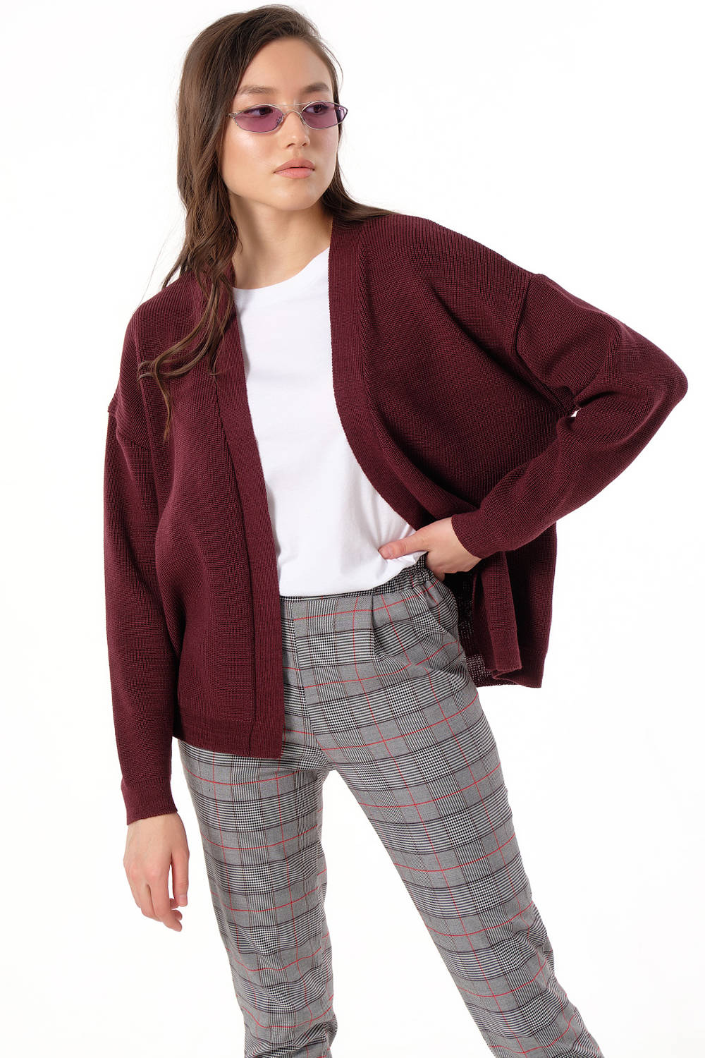 Особенности: Объемный вязаный кардиган oversize, выполнен фактурным способом из смесовой пряжи с содержанием хлопка.